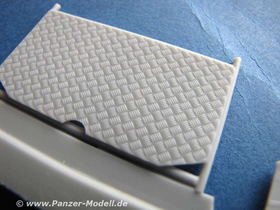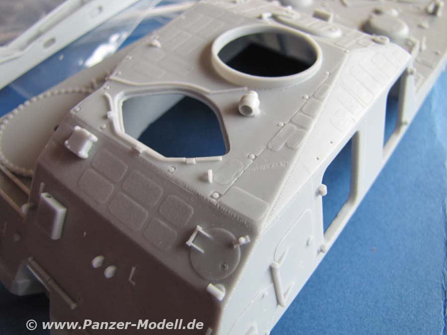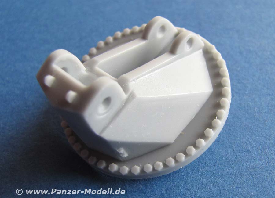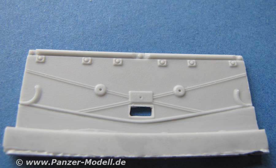 Allerdings ist eh der größte Teil des Laufwerks von den sehr schönen Schürzenelementen aus Resin verdeckt. Da diese in einzelnen Segmenten vorliegen kann man diese ggf. auch hochgeklappt darstellen, wenn man will.