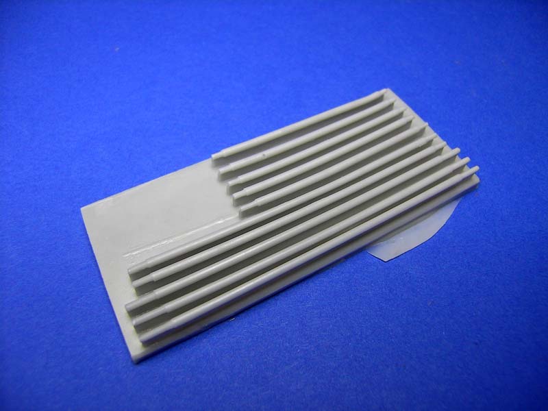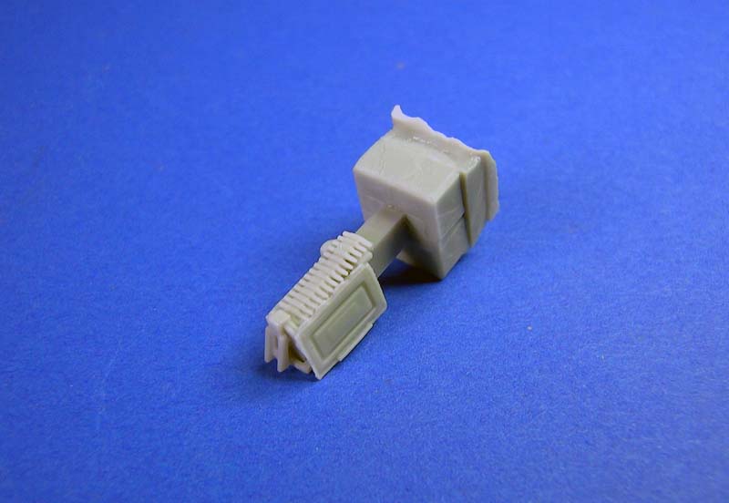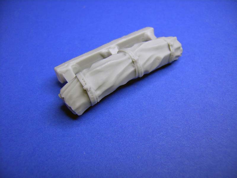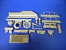 Der Umbausatz besteht aus insgesamt 32 Resinbauteilen. Dazu gehören eine komplette neue rechte Seitenpanzerung, Halterungen für die Zeltstangen, Zeltbügel und -stangen, geänderte Antennensockel sowie eine geänderte MG-Schützenluke mit sämtlichen Anbau- und Zubehörteilen sowie eine große zusammengerollte Zeltplane. Ein sehr schönes Cal. 50 MG inklusive offenem, mit einem Gurt gefüllten, Munitionskasten gehört ebenfalls zum Lieferumfang.