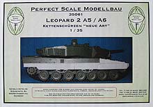 Mit der Nr.35061 kommen von Perfect Scale Leopard 2 A5/A6 Kettenschürzen "neue Art" als Zurüstsatz..