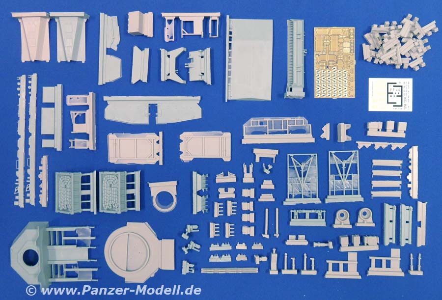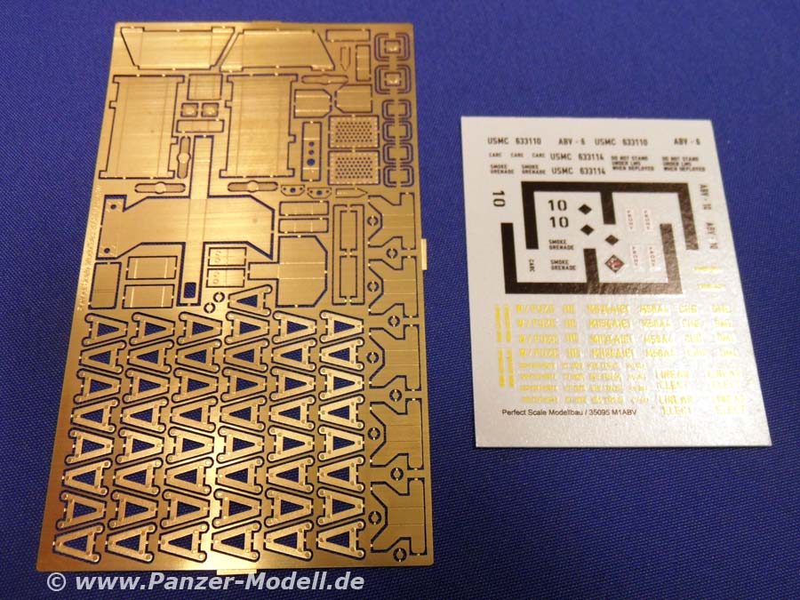 Das Original ist ein umgebauter M1 Abrams MBT. Dieser wurde so umgebaut, dass er alles durchbrechen kann, was einem Haufen Marines im Weg sein könnte. Also hauptsächlich Minen, aber auch Panzersperren uvm. Dazu wurden im Turm zwei Miclic-Behälter für je eine Rakete mit angehängter Sprengschnur montiert. Die Funktion derselben guckt man sich am besten auf Youtube an. Sehr eindrucksvoll! Zudem kann an der Fahrzeugfront ein Räumschild oder ein Pearson-Minenpflug montiert werden. PS liefert nun also erstmal die Version mit Dozer aus. Logisch, weil der Dozer ja eh im Programm ist und der Minenpflug, laut Aussage des Urmodellbauers, etwas sehr kompliziert ist. Aber er ist in Arbeit und wird ebenfalls kommen! Aber zurück zum Umbausatz! Enthalten sind neben unzähligen Resinteilen (202, wenn ich mich nicht verzählt habe) noch eine Platine Ätzteile (zählen hab ich mir gespart) und ein Decalbogen. Die Resinteile sind wie gewohnt perfekt ohne Verzug oder Luftblasen o. Ä. gegossen. Eben typisch Perfect Scale. Bei der Vielzahl der Teile ist erstmal sortieren angesagt. Allein die Kleinteile füllen zwei mittelgroße Zipbeutel. Aber dank der Teileliste in der Anleitung sollte das klappen! Wenn wir nun schon bei der Bauanleitung sind wollen wir sie mal Schritt für Schritt durchgehen:Erst kommt der Dozer! Und das ist schon ein Modell im Modell! Ist dieser montiert geht es ans andere Ende. Die Minengassenmarkierer auf dem Heck des M1. Diese können zusammen- oder ausgeklappt dargestellt werden. Wer die Stöcke auch mitbauen will soll diese aus 0,3mm Rundmaterial selbst fertigen. Bleibt noch der Turm! An diesem fällt natürlich zuerst die reaktive Panzerung auf. Die Panzerungsblöcke werden einzeln auf geätzte Halterungen montiert. Etwas mehr Arbeit, aber sicher das bessere Ergebnis als Blocksegmente. Wo früher einmal die Munition des Abrams lagerte befinden sich jetzt also zwei Miclic-Systeme. Und auch hier stimmt jedes Detail! Theoretisch ist sogar eine Beladszene möglich. Alles lässt sich offen oder geschlossen bauen! Super! Schön auch dass an die Störsender für den Afghanistan-Einsatz gedacht wurde! Die beiliegenden Decals enthalten alle Markierungen vom Zeichen der Pioniere bis zu den Markierungen an den Miclic-Behältern und den Duke-Antennen. Wie gehabt: Super! Fazit:Langsam wird es langweilig! Kann der liebe Herr Betzler nicht mal was falsch machen? ;-) Jedes Fazit besteht immer nur aus „Super“, „perfekt“ und „genial“. Aber so ist es eben! Ein genialer Umbausatz mit perfekter Detaillierung und super Gussqualität!Der Preis ist mit ca. 115,- EUR gerechtfertigt, auch wenn sich die drei Stangen Plastikrundmaterial dafür gerne mit in der Packung befinden dürften. Aber der erfahrene Modellbauer wird welche haben und allen Anderen ist dieser Umbausatz auf Grund seiner Komplexität eh nicht anzuraten. Man sollte wenigstens schon ein paar Resinmodelle gebaut haben! Bleibt anzumerken, dass die Entwicklung dieses Umbausatzes fünf Leute drei Jahre beschäftigt hat! Respekt! Nur die Wenigsten machen sich solche Mühen! Also belohnt es und kauft reichlich ABVs! Und übrigens: In Afghanistan fahren die immer im Doppelpack! Also kauft gleich zwei! ;-)