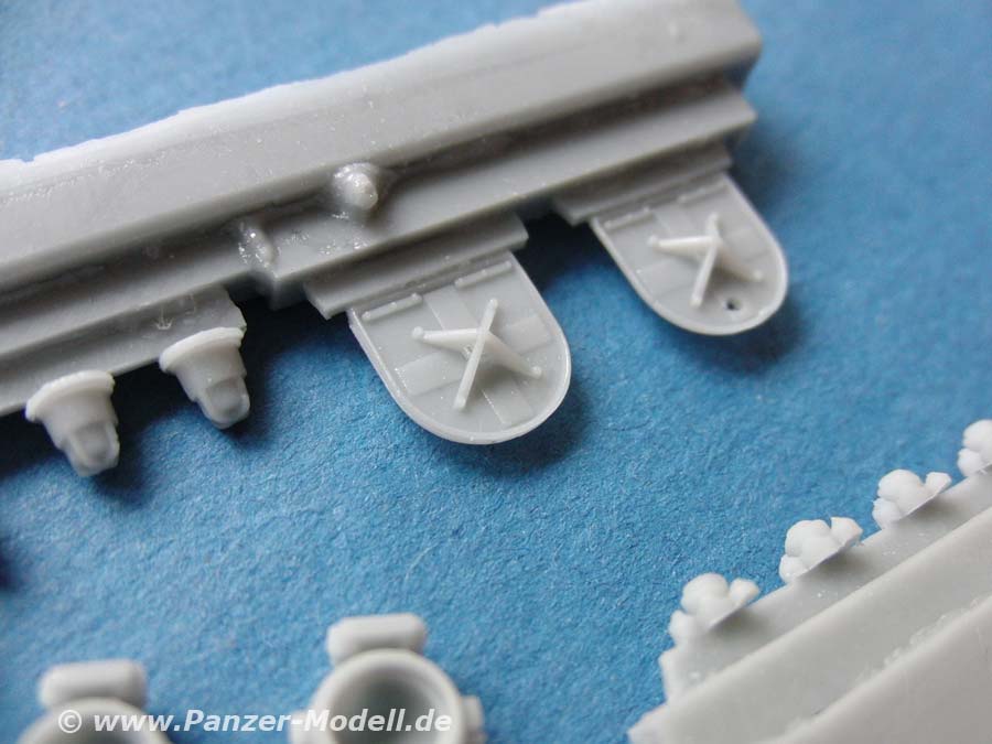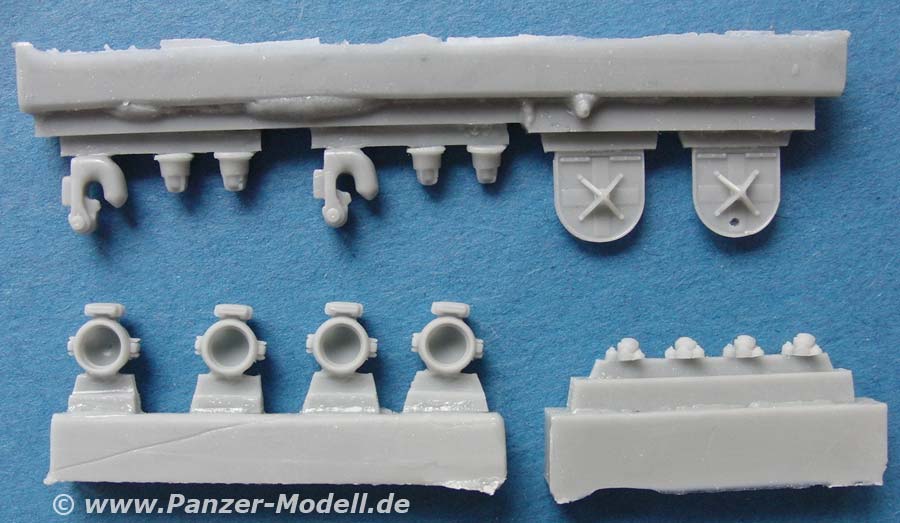 Im Set enthalten sind 16 Resingussteile, die man hauptsächlich für Leoparden aber in großen Teilen auch für die meisten anderen Bw Fahrzeuge nutzen kann.