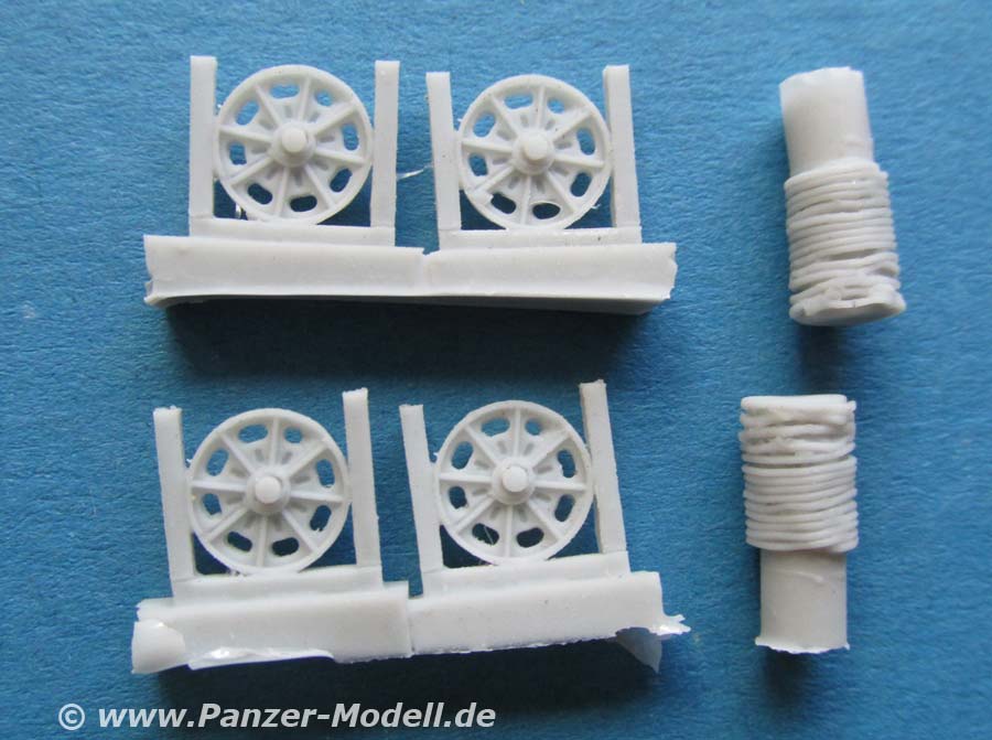 Mit diesem netten, kleinen Set, das 6 Resinteile umfasst, bekommen die Bundeswehrmodellbauer die Möglichkeit 2 Feldkabeltrommeln zur Ergänzung an Fahrzeugen