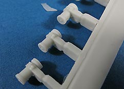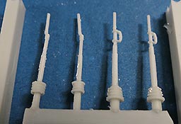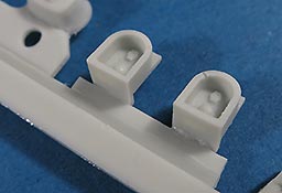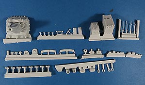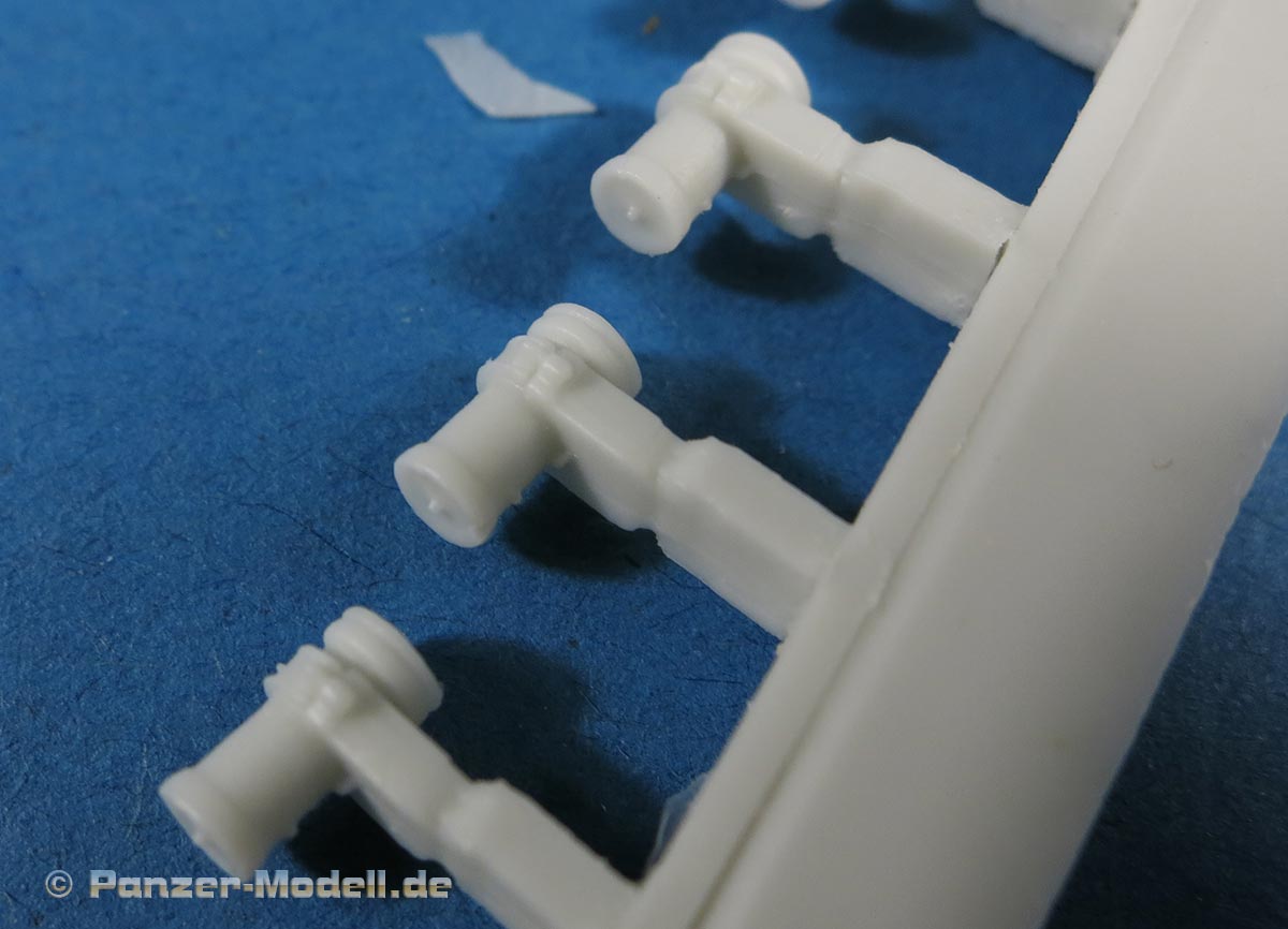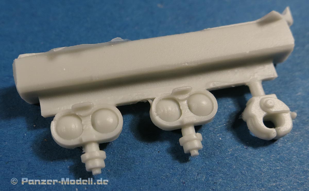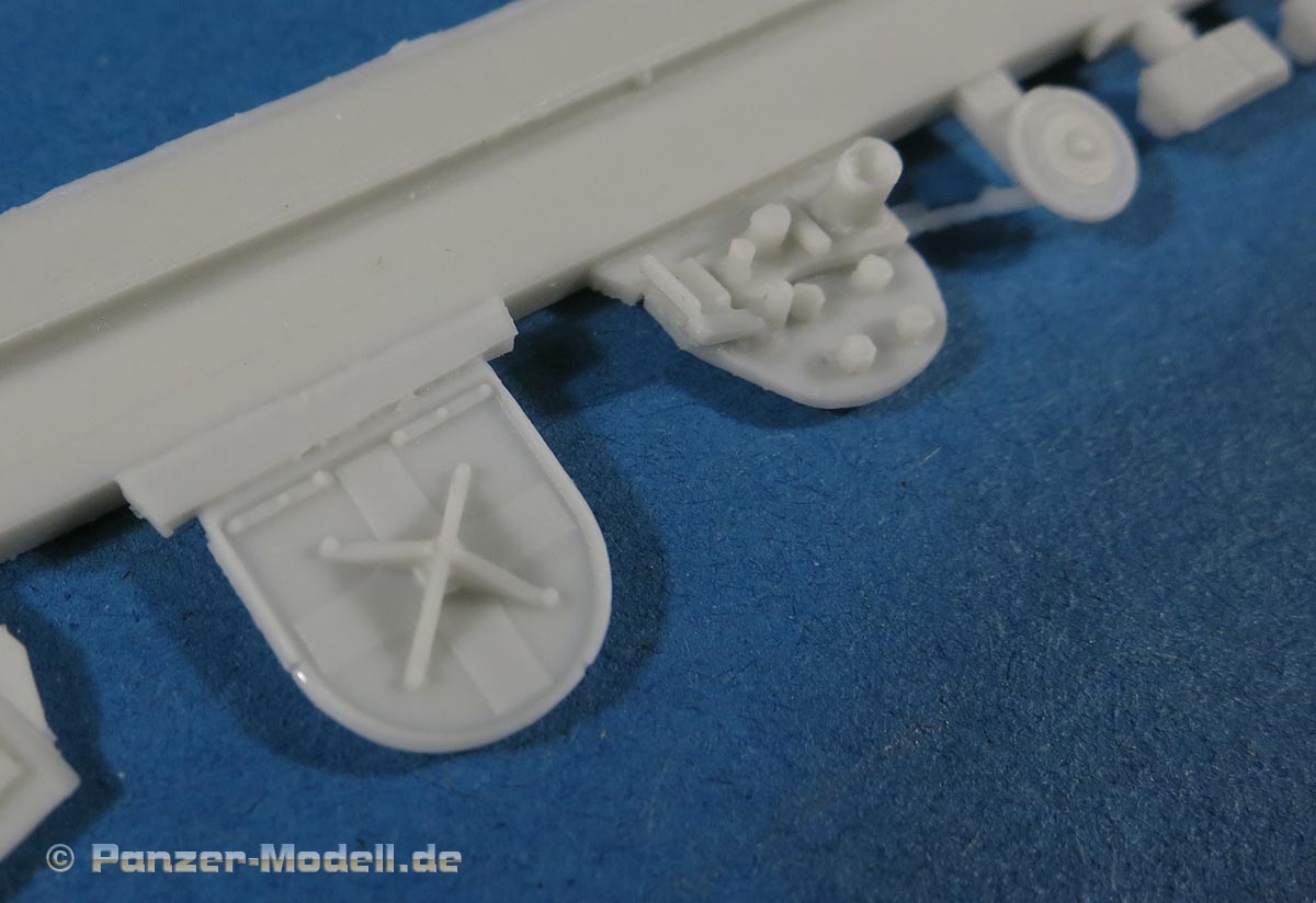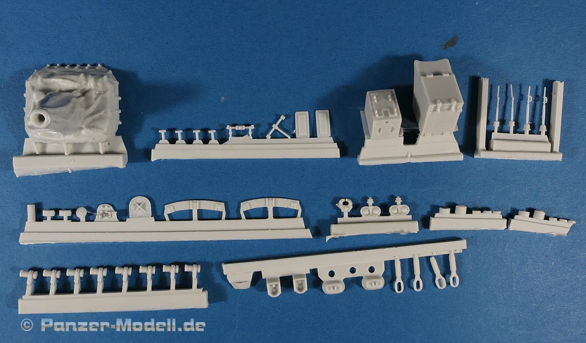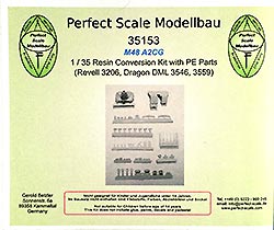Für die Bausätze des M48 A2, wie von Dragon oder Revell gibt es nun dieses schöne Umbauset mit dem der geneigte Modellbauer dem Modell zum einen schöne und wichtige Details hinzufügen kann und vor allem kann man hiermit den M48 auf die version CG bringen, also die in der Bundeswehr verwendete mit den entsprechenden deutschen Änderungen und Bauteilen. Dazu stehen in diesem Bausatz rund 50 Resinteile und rund 40 PE Teile zu Verfügung. Die Resinteile ersetzen oder ergänzen die Plastikteile des Bausatzes und so finden sich zum einen so wichtige Bauteile wie die Plane für die Kanonenblende, die bei den Bausätzen entweder fehlt oder bescheiden dargestellt ist. Diese ist in Resingegossen und weist eine schöne Faltenstruktur auf, sowie die obligatorischen Schnallen am Rand. Ein sehr schönes Set mit wichtigen und guten Details für die Darstellung eiens korrekten M48 A2 CG in deutschen Diensten.
