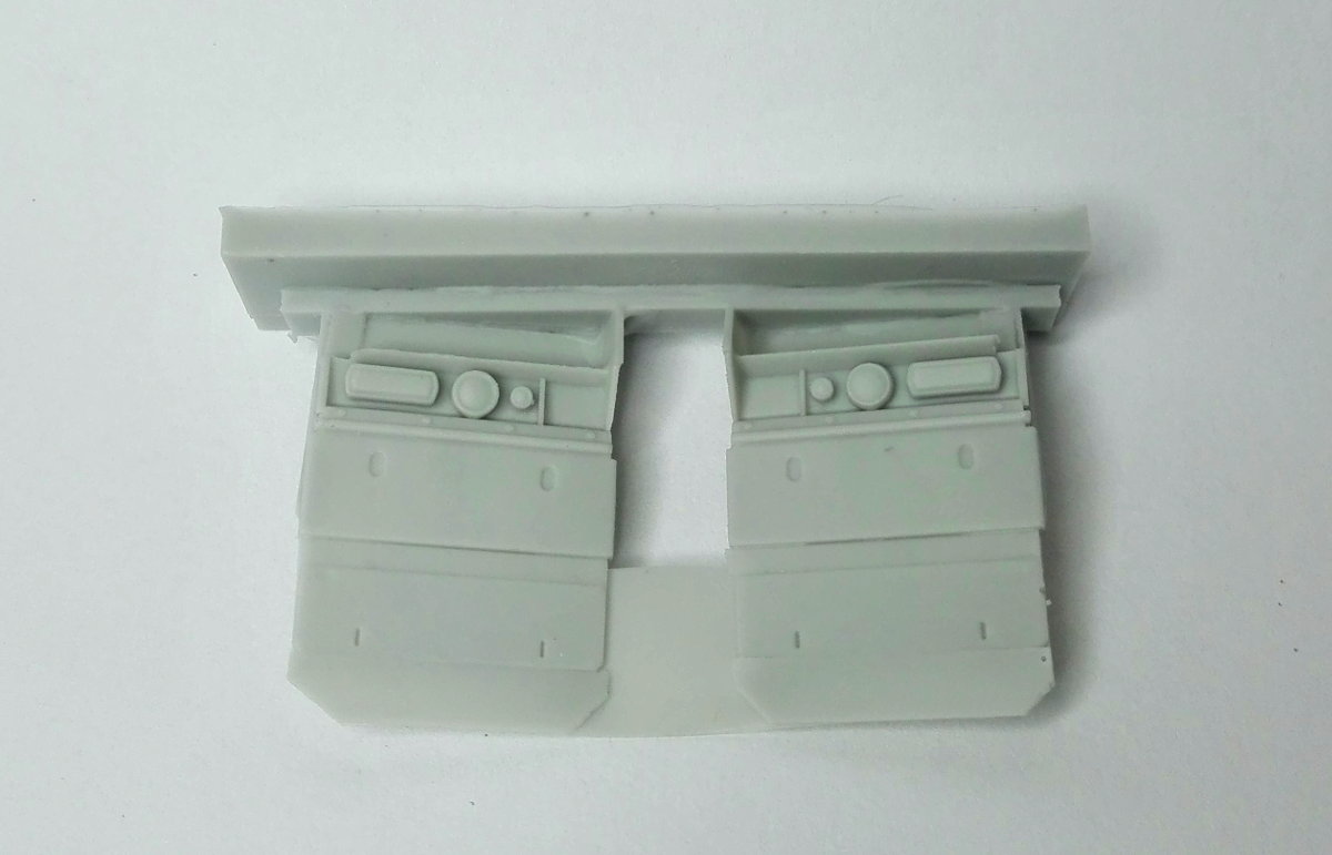 In disem Set sind drei Bauteile aus hellgrauem Resin in hervorragender Fertigungsqualität enthalten. Zum einen bietet der Umbausatz eine komplette Heckwand sowie zwei komplette Schmutzfänger inklusive der Lampenträger.