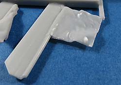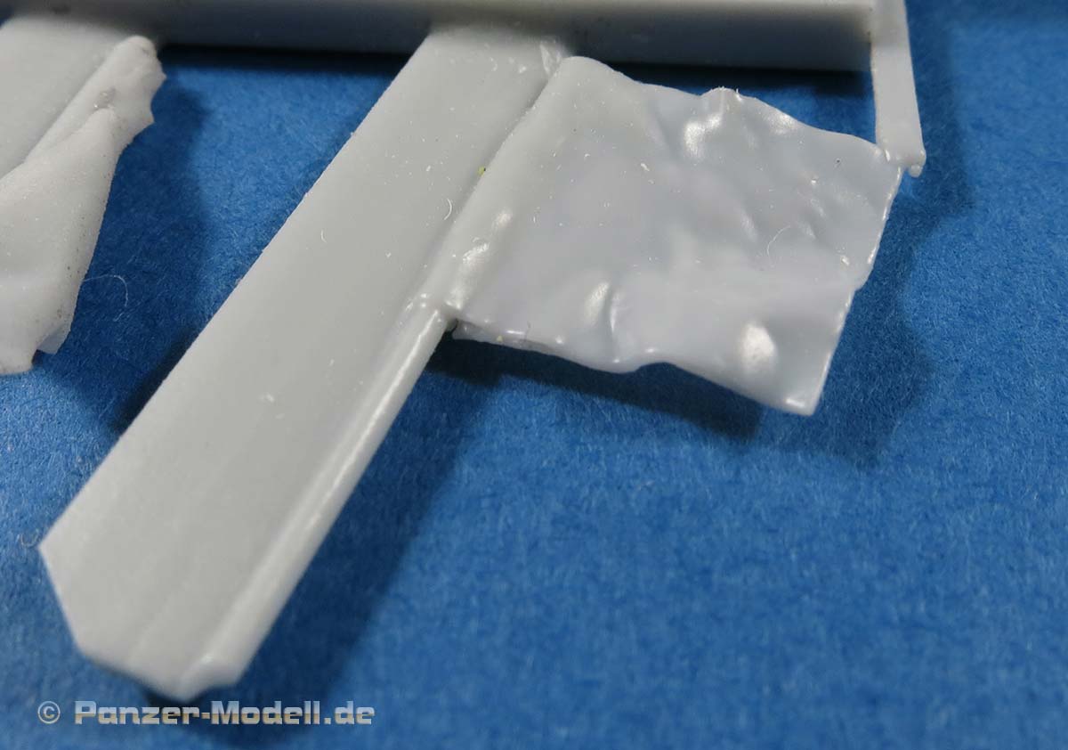 Nun gibt es dieses Set von Perfect Scale, wie gesagt in guter Gussqualität. Der Anguss sitzt über die gesamte Länge an der Hinterseite des Flaggenstocks und dürfte recht leicht zu versäubern sein.