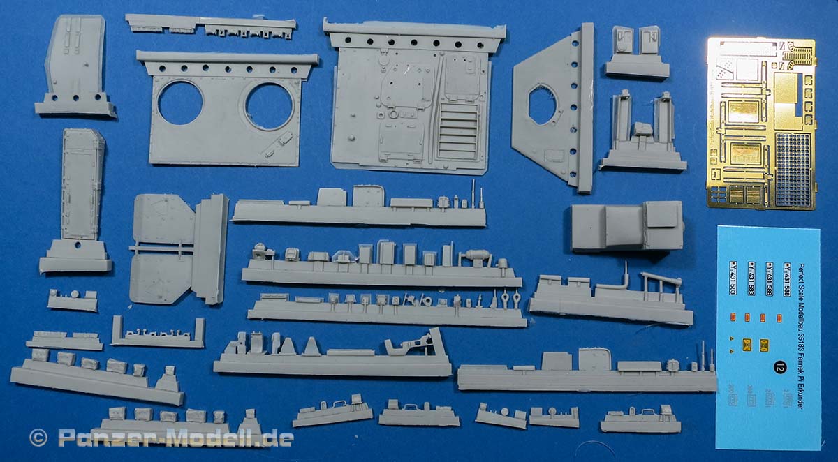 Nachdem Trumpeter offenbar keine weiteren Fennekversionen auf den Markt bringt, springt hier Perfect Scale zur Rettung ein und präsentiert mit dem vorliegenden Satz Bauteile zum Umbau des Standard-Fenneks zum Pioniererkunder.