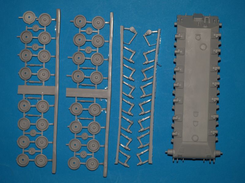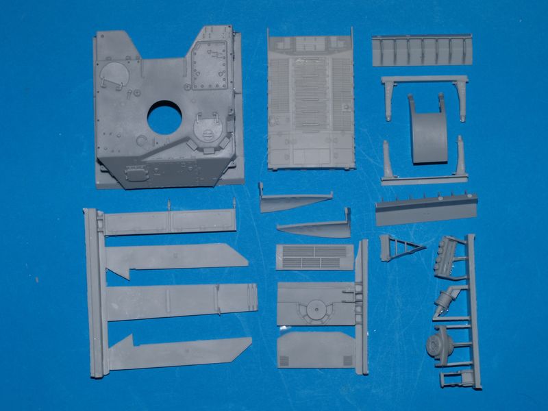 Der Bausatz umfasst nicht weniger als 260 Resinteile und darüberhinaus ein Set Plastikspritzguss T97 E2 Einzelgliederkette von AFV-Club, sowie eine Platine PE Teile, ein Decalbogen und sehr gute, weiche Kupferdrahtseile.