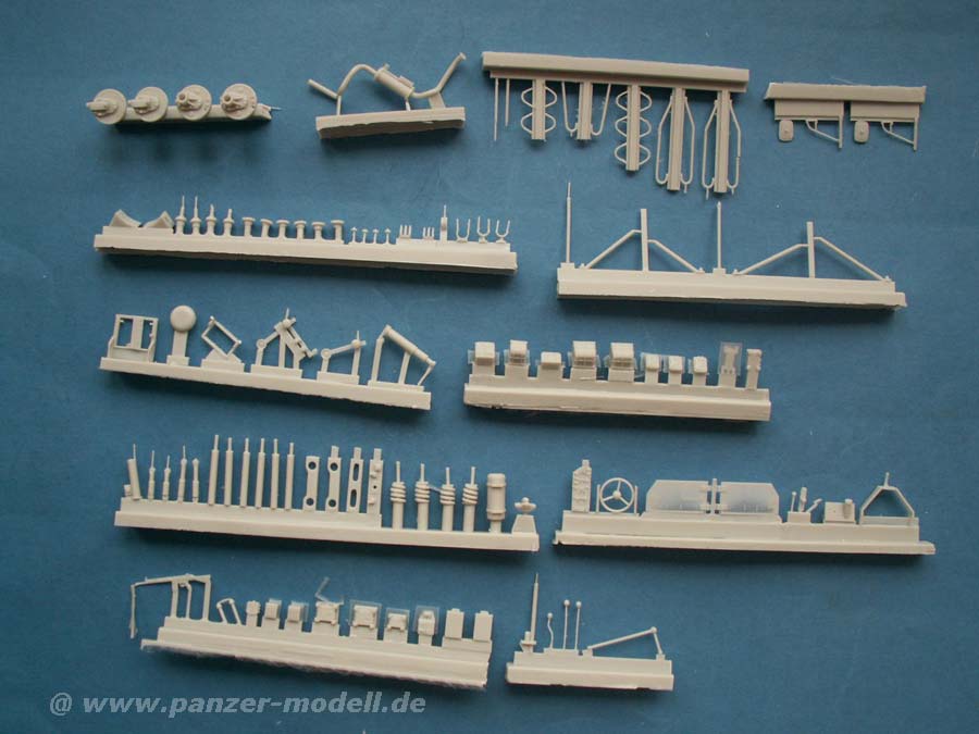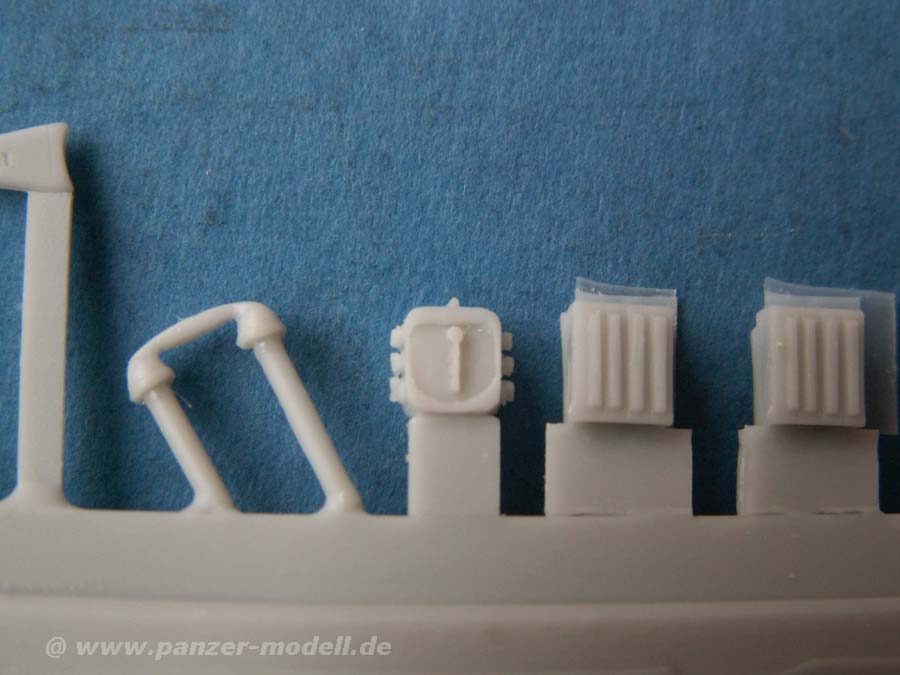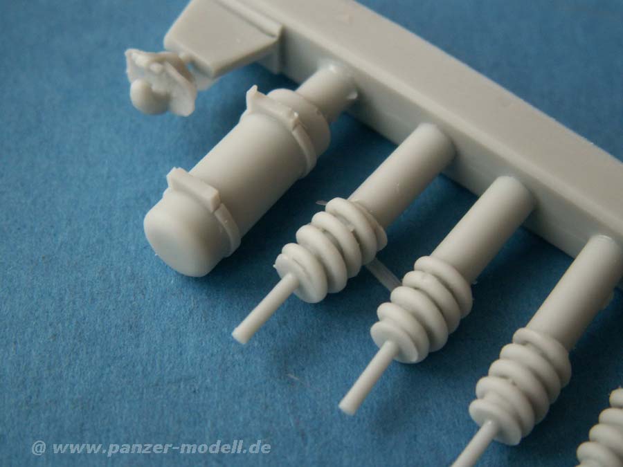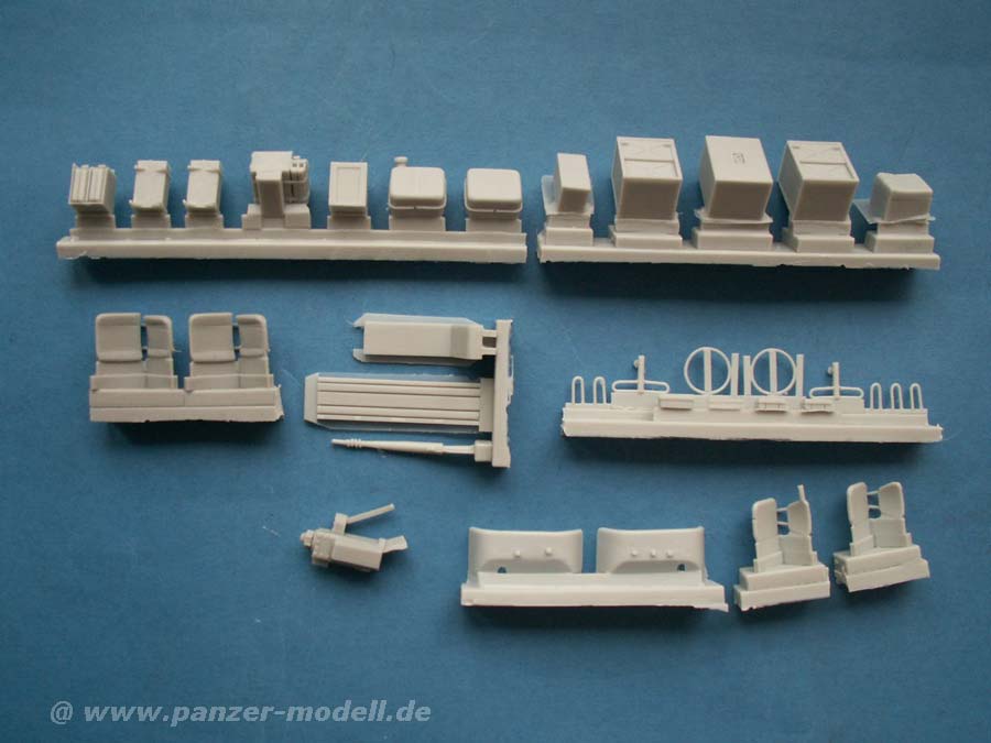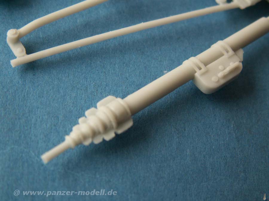 Die Resinbauteile sind durch die Bank extrem sauber gegossen, man findet nahezu keinen Verzug oder irgendwelche Luftblasen im Guss. Dabei ist der Guss sehr fein detailiert und vor allem teils erstaunlich fein und dünn gegossen.