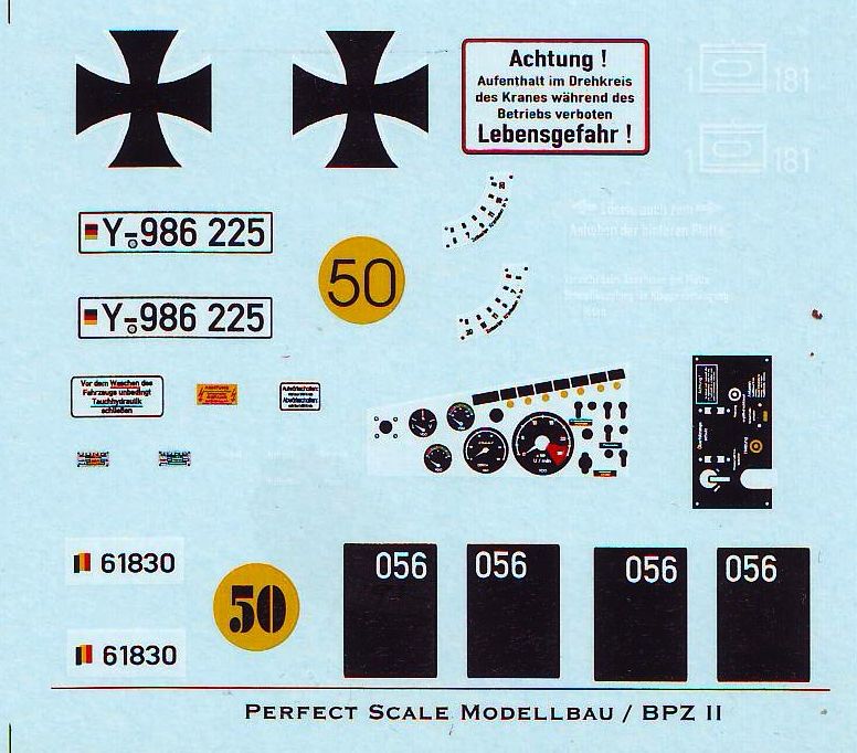 Die Bauanleitung kommt mit 5 DIN A4 Seiten aus und verfügt ferner über eine dreiseitige Teileliste. Die einzelnen Bauabschnitte werden anhand von Photos eine Rohbaumodells, sowie den zu verbauenden Teilen dargestellt. Es ist zwar eine etwas ungewohnte Darstellung. In meinen Augen dürfte es aber beim Bau kaum Probleme geben. Bei soviel Licht muß es leider auch ein wenig Schatten geben. Es fehlen die Bemalungshinweise, sowie die Plazierung der Decals. Auf Nachfrage wird es in den kommenden Tage auf der Webseite von Perfect Scale ein passendes Update der Bauanleitung geben.