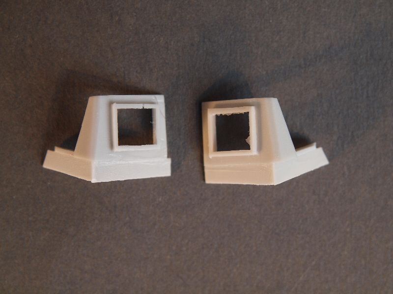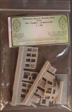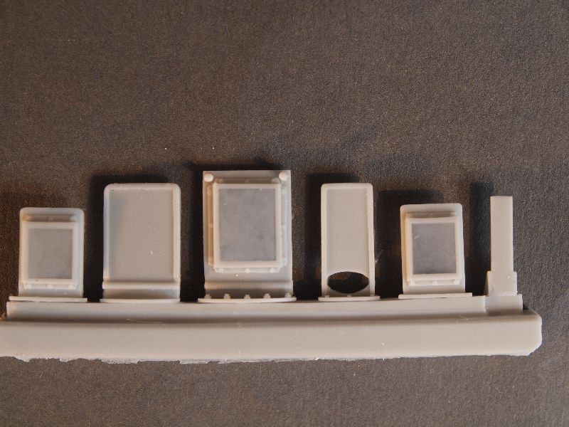 Dieses Zubehörset besteht aus 12 Teilen aus hellgrauem Resin, sowie ein Klarsichtmaterial für die Scheiben der Schutzschilde. Die Resinteile sind sehr sauber und detailliert gegossen. Verzug konnte ich bei meinem Exemplar nicht feststellen. Ebenso sind Lufteinschlüsse nur sehr selten zu finden. Bei den Angüssen wurde versucht, diese auf ein Minimum zu reduzieren, so daß man die Teile mit geringem Aufwand verbauen kann. An einigen Stellen findet sich eine dünne Fischhaut, welche sich aber sehr leicht mit einem scharfen Skalpel entfernen lassen.