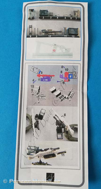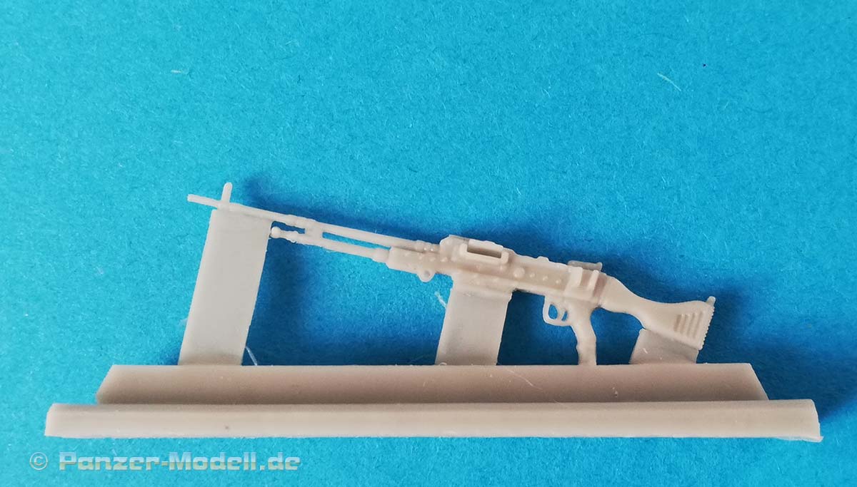 Das FN MAG (Fabrique Nationale - Mitrailleuse d'Appui Général / Mehrzweck Maschinengewehr) C6 wurde erstmals in Kanada als koaxiales MG im Kampfpanzer Leopard C1 eingesetzt. Seitdem wird es in den kanadischen Streitkräften mit der Bezeichnung C6 GPMG hauptsächlich als Unterstützungswaffe auf Zug-Ebene eingesetzt. Jedem Schützenzug ist ein C6-Maschinengewehr zugeordnet. Das C6 GPMG (General Pupose Machine Gun) ist auch in einer Vielzahl von Fahrzeugen verbaut, darunter der G-Wagon LUVW (Mercedes G), LAV III, Coyote, Leopard C2 und dem CH-146 Griffon Hubschrauber. In diesen Fahrzeugen sind die C6-GPMGs koaxial und auf Lafetten montiert und dienen der Feuerunterstützung der Infanterie oder der lokalen Verteidigung des Fahrzeugs. Perfect Scale bringt nun die C6 Version mit der Leopard Lafette auf den Markt, um die vorhandenen Bausätze der C1 und C2 von Takom, Meng oder Hobby Boss aufzuwerten. Das Set besteht aus dreizehn sauber in schwarzem 3D gedruckten Einzelteilen, welche eine hervorragende Detaillierung aufweisen, und einem superfeinen Maschinengewehr aus Resin. Leider ist einer der drei Angüsse an dem Resinteil genau am Lauf des MGs hier ist extreme Vorsicht und Konzentration beim Abtrennen geboten, um das ansonsten hervorragend gegossene Maschinengewehr nicht zu beschädigen. Fazit: Ein tolles Zurüstset um einen kanadischen Leoparden aufwerten zu können. Aufgrund der filigranen Bauteile, welche zum Teil winzig sind ist der Satz eher nicht für den Anfänger geeignet. Ansonsten: Absolute Kaufempfehlung.