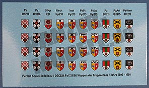 Perfect Scale Modellbau bringt mit der Art.Nr.DEC024 den Decalbogen Btl Wappen PzBrig 21 auf den Markt.