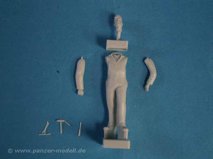 Die Gussqualität ist gut, der Bundeswehr-Blaumann ist gut gestaltet, wobei dieser etwas hauteng wirkt, da recht wenig Faltenwurf zu sehen ist. Der Kopf mit Feldmütze ist sehr ansprechend und sehr sauber gemacht.