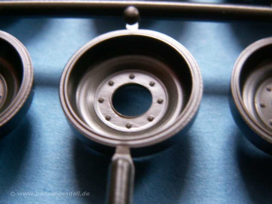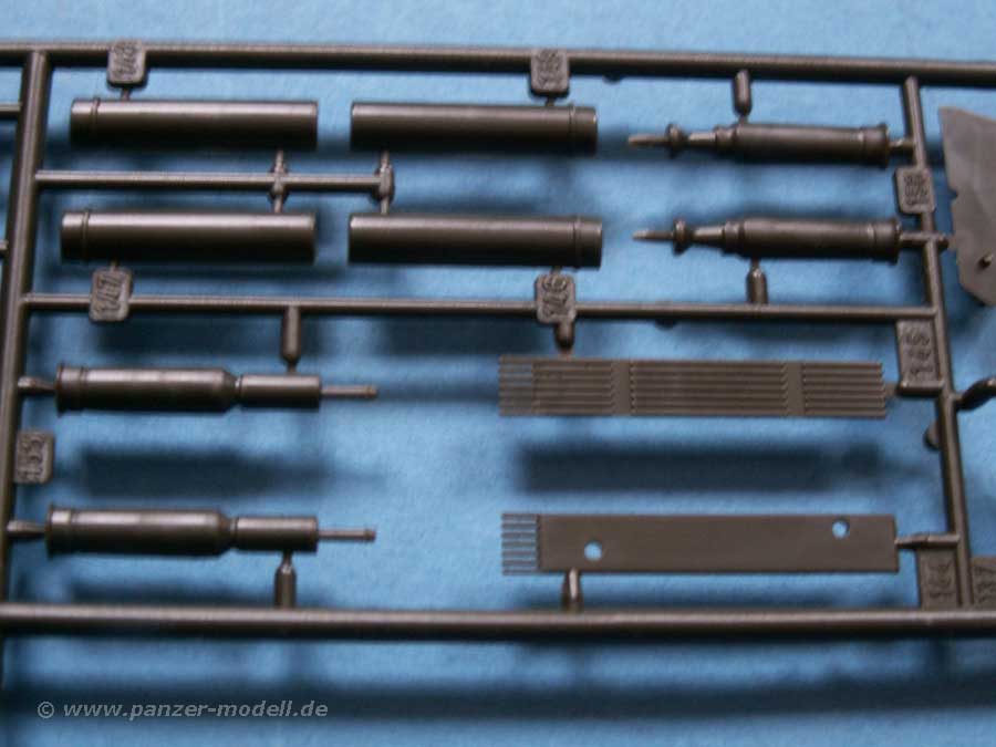 Die allgemeine Qualität ist gut, wenn auch nicht so fein wie beim Pendant von Tamiya. Leider ist die Turmoberseite auch immer noch glatt, ohne Antirutschbeschichtung, die der detailverliebte Modellbauer selber aufbringen müsste. Dafür sind die Antirutschpads auf der Wanne schön dargestellt und auch an sich ist die gesamte Detailierung der Teile ausreichend - auch wenn die Kette sicher besser gemacht werden könnte, zumal diese etwas sehr steif ist.