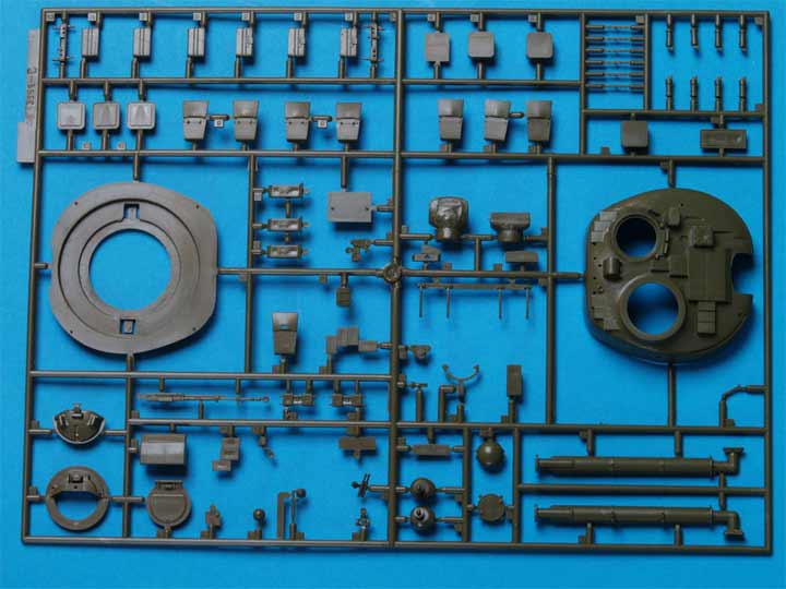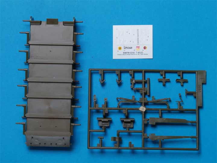 Hervorzuheben ist die Tatsache, daß die Motorabdeckung als separates Teil geliefert wird. Analog zum T-72 besteht die Kette wieder aus mehreren Segmenten, die einen schnellen Zusammenbau der Kette vermuten lassen.