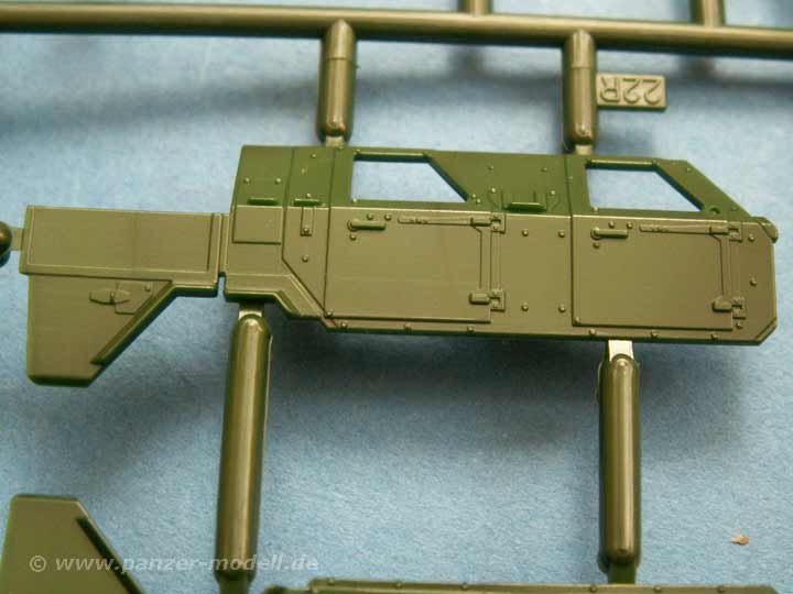 Dieses kleine Fahrzeug (7,6cm Länge) besteht aus nicht allzuvielen Teilen, die sich an 3 Spritzlingen verteilen. Dazu gibt es einen Spritzling mit Klarsichtteilen für die Scheiben. Die Detailierung und Ausführung ist gut, wie man es von Revell gewohnt ist - neue Maßstäbe werden hier nicht gesetzt aber für die Größe bekommt man hier gute Arbeit!
