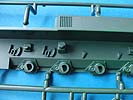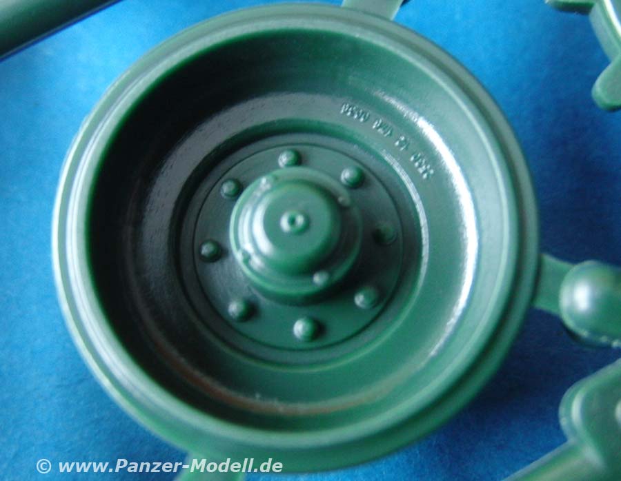 Das Laufwerk wird mit einzeln einsteckbaren Schwingarmen dargestellt. Die Laufrollen setzen sich aus zwei Halbteilen zusammen und machen einen guten Eindruck mit wirklich schönen und klaren Radbolzendetails und sogar einer eingarvierten Versorgungsnummer!