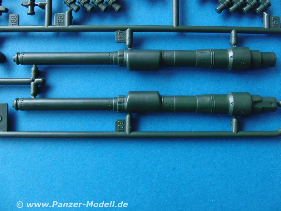 Das L/44 Kanonenrohr ist leider zweiteilig ausgeführt, bietet aber angenehmerweise die grühe und späte Mündung mit/ohne Kollimator.