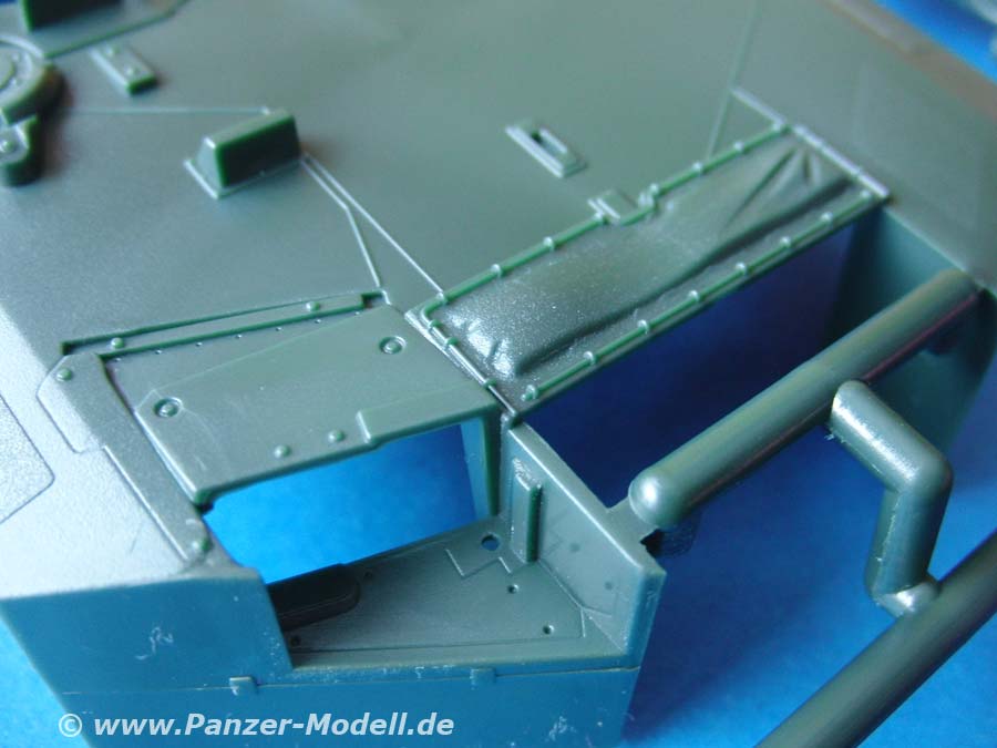 Die Fahrerluke ist beweglich gestaltet, was sehr vorbildlich ist - auch wenn kein Innenraum vorhanden ist, kann man zumindest eine Fahrerfigur einsetzen, wenn man mag.