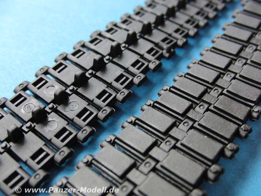 Die Kette ist aus relativ weichem Vinyl und pro Seite aus zwei Halbteilen zusammenzusetzen. leider finden sich auch hier auf der Innenseite einige Auswerferstellen.