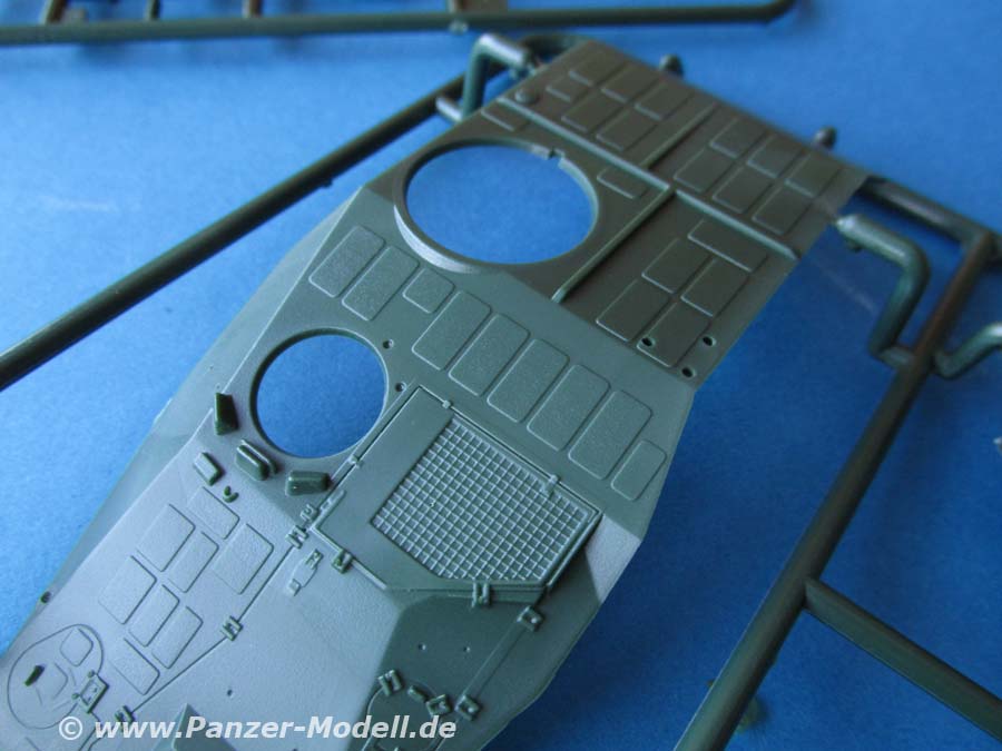 Die große heckklappe lässt sich nicht offen darstellen, was aber aufgrund der fehlenden Innenausstattung auch kein echtes Problem ist. Dafür lassen sich Kommandanten und Fahrerluke offen darstellen - aus oberngenannter Problematik empfiehlt sich ein Ãffnung dieser aber nur um eien Figur darin zu platzieren.