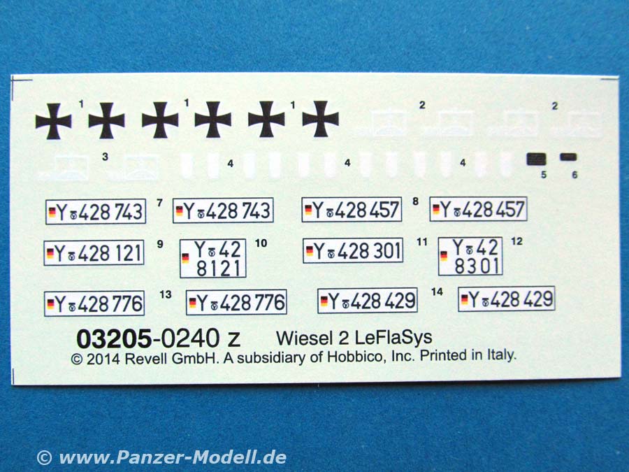Mit dem Decalbogen und den Markierungsvorschlägen sind für jedes der drei enthaltenen Modelle folgende Markierungen möglich: