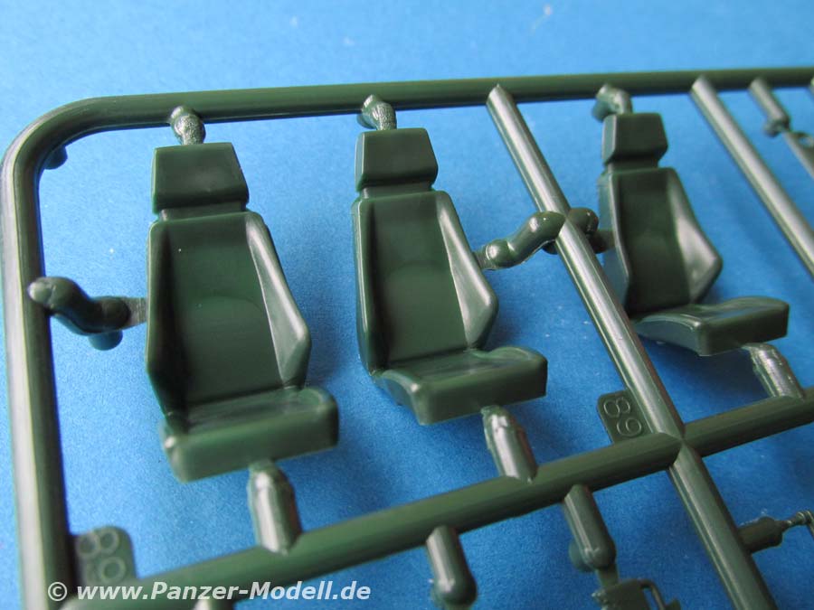 Dafür ist die Beigabe eines recht schönen Innenraums mit Fahrer und Beifahrerplatz, den Armaturen, Funkgeräte, sowie Sitze im Heckbereich sehr erfreulich.