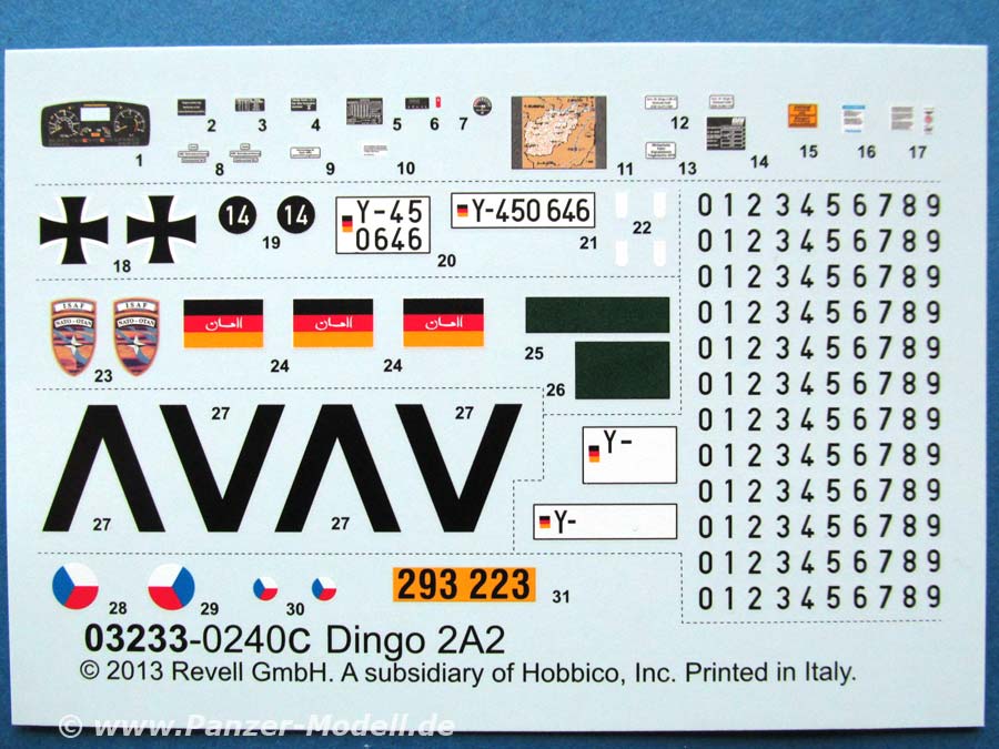 Die Bauanleitung ist mit 63 Bauschritten recht umfangreich und detailliert. Die Zeichnungen sind in typischer Revell Manier. Optionsteile für die unterschiedlichen Nutzerländer sind entsprechend aufgezeigt und gut dargestellt.
