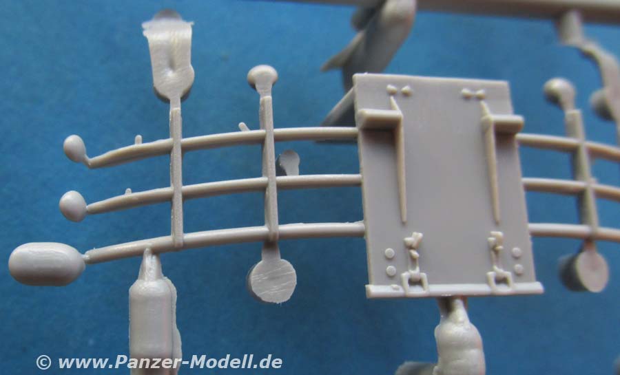 Die rund 260 Bauteile machen einen ganz hervorragenden Eindruck. Klare, deutliche, scharfe Details, die schön dargestellt sind. Sauberer Guss ohne Formenversatz oder Verzug und eine gut strukturierte Aufteilung der Bauteile.