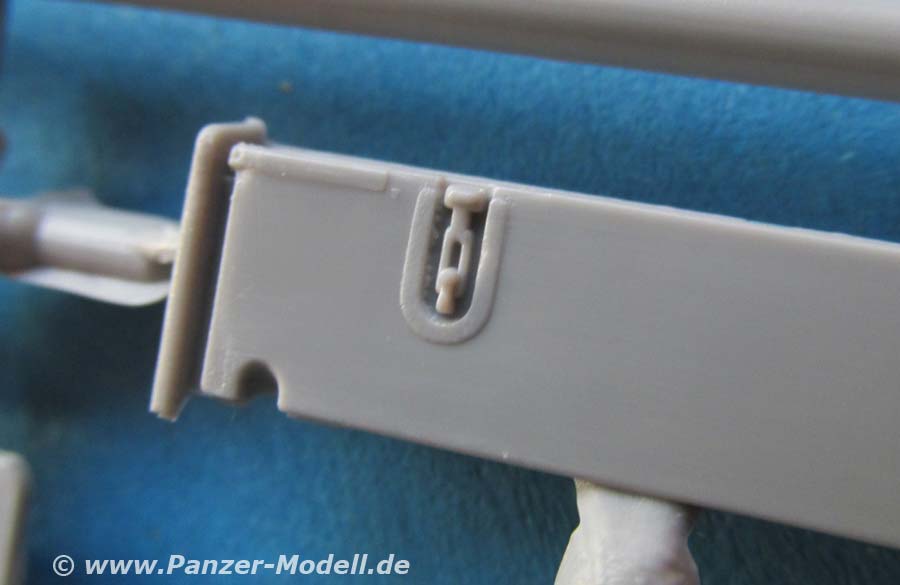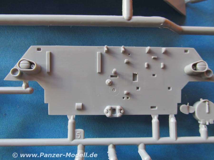 Was dem Bausatz insgesamt leider fehlt, sind klare Plastikteile, die für die Darstellung der Scheinwerfer, Optiken, Winkelspiegel und Schießscheinwerfer eigentlich zwingend erforderlich sind.