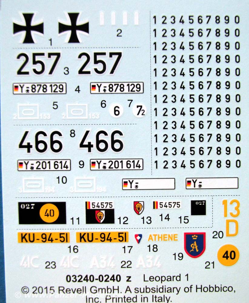 Es handelt sich hier um eine komplette Formneuheit - also nichts von den alten Leopard 1 Formen. Darüberhinaus hat Revell sich hier der frühen Bauform der erstn Baulose angenommen, die noch mit der frühen Kette, ohne Zusatzpanzerung und ohne Wärmeschutzhülle in die Truppe kamen - also die Version, die vor der A1 Version kam.