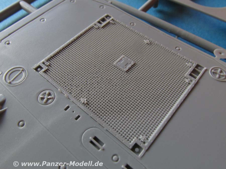 Auch das Lüftergitter auf dem Motordeck hat Revell komplett ausgegossen dargestellt - beim ersten gedanken daran gruselte es mich, aber beim nähren Betrachten finde ich es mittlerweile überzeigend und erstaunlich fein detailliert gemacht, sodass ein geätztes Gitter nicht zwingen notwendig ist. Wer dennoch eines verwenden will, muss hier einige Sägearbeiten vornehmen.