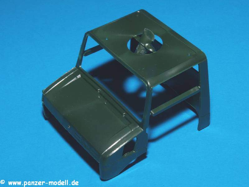 Leider kann man den UNIMOG nur beplant bauen. Kurioserweise ist die hintere Plane offen dargestellt und es fehlt die Bank auf der Ladefläche des UNIMOGS. Hier hätte Revell in meinen Augen den Bausatz ohne größere Aufwände überarbeiten können.
