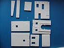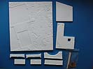 Im großen und stabilen Karton finden sich ganze 18 Gips Teile, sowie zwei Fenster und eine holzgelaserte Tür.