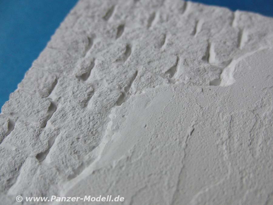 Die Gips Teile sind sehr ansprechend und schön detailliert. Die Bodenplatte misst 34 x 30 cm mit schön strukturiertem Boden mit den Aussparungen für den Aufbau des mehrteiligen Hauses und des Torbogens sowie etwas Pflasterung vor dem Haus.