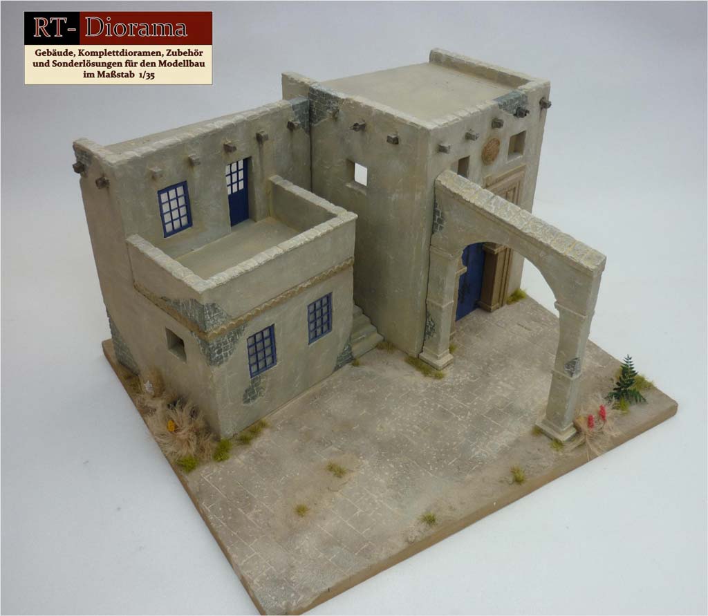 Der große Eingangsbogen zum Haus bleibt ohne Tür, sodass man hier noch Innenleben mit Teppichen und Figuren gestalten kann, denn Eine Inneneinrichtung ist im Bausatz so nicht enthalten - man hat hier also eigene Gestaltungsmöglichkeiten.