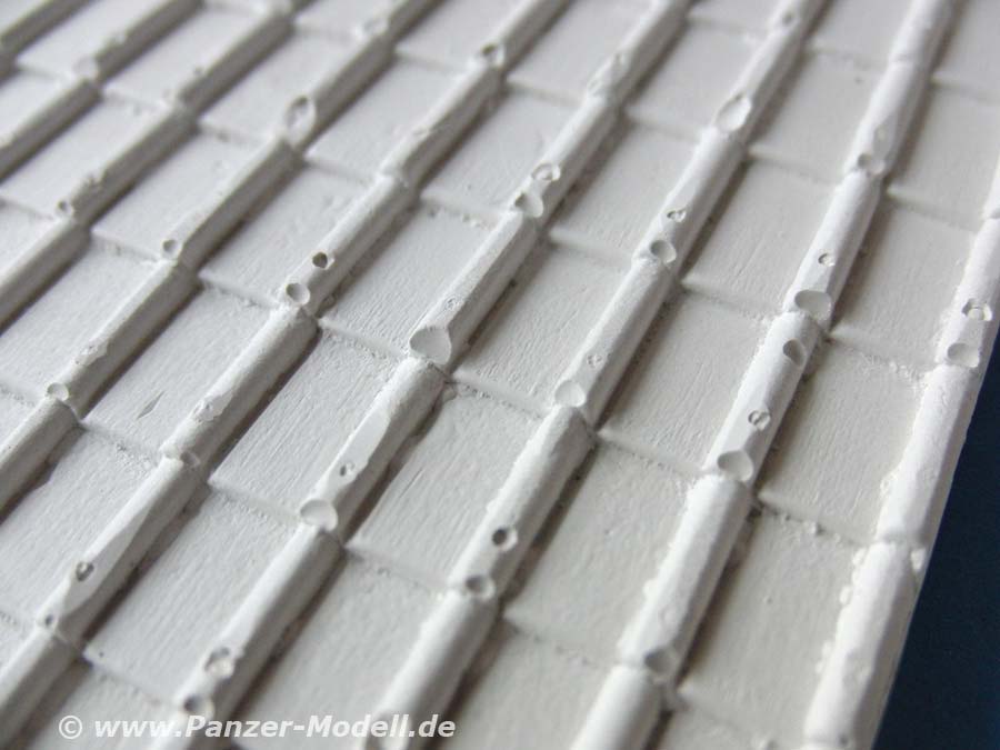 Die Dachziegel machen ebenfalls einen guten Eindruck mit teilweise Beschädigungen und gebrauchtem Aussehen, wobei mir an manchen Stellen nicht ganz klar ist ob es sich nicht auch um Gussblasen handelt.