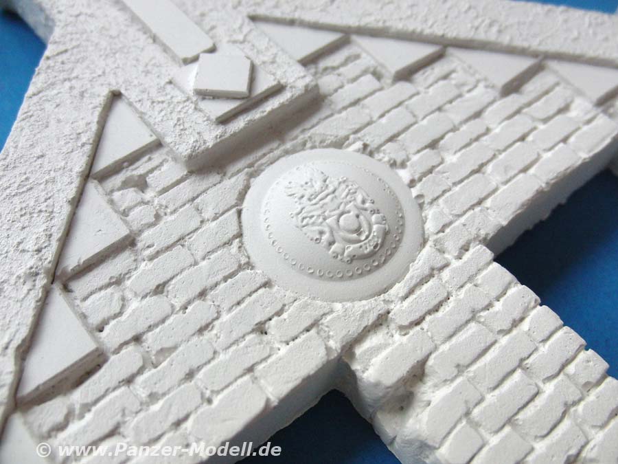 Die Gips Teile sind wie gewohnt schön detailliert mit gutem Guss. Eine Bodenplatte ist in diesem Set nicht enthalten, sodass man dieses Gebäude ganz nah eigenem Belieben auf eigene Dioramen und Platten stellen kann.