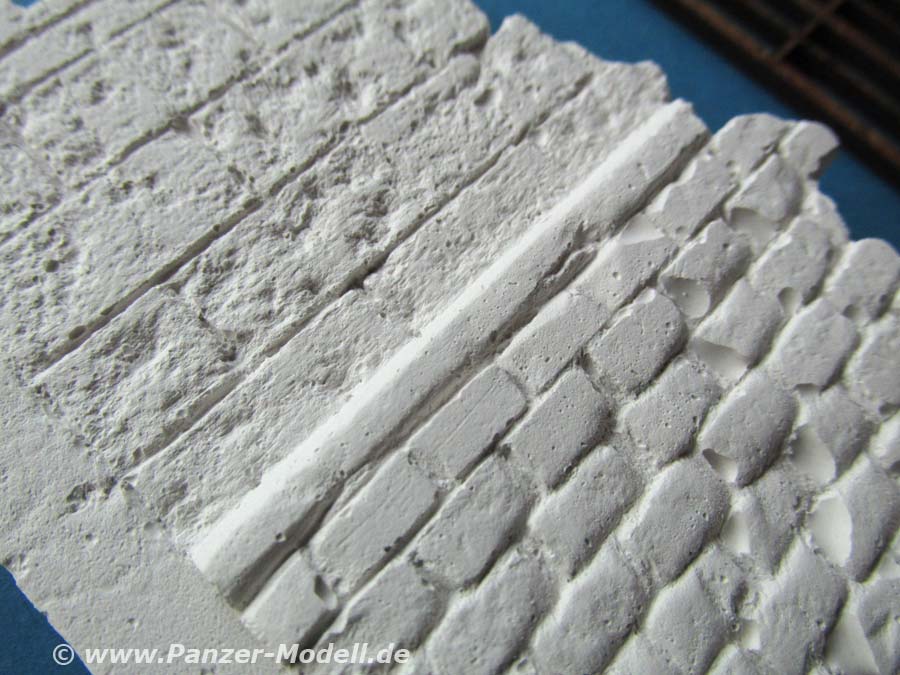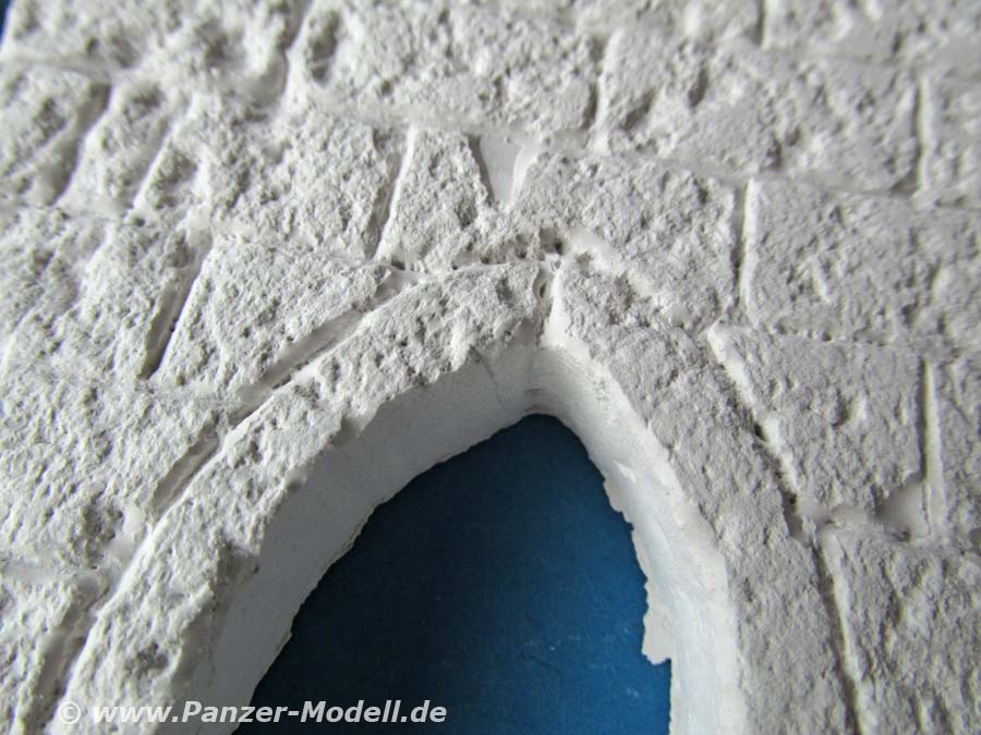 Die Gestaltung des Mauerwerks ist, wie schon angesprochen, sehr schön und realistisch. Die angesetzten Säulem wirken sehr gut mit den großen Steinen und die Einfassungen der Fenster sind schön und realistisch herausgearbeitet.