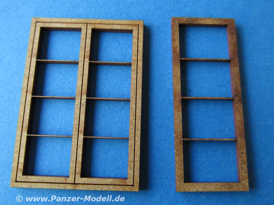 Für die Fensterrahmen und die Tür liegen wieder die bekannten lasergeschnittenen Holzteile bei, die exakt in die Aussparungen hineinpassen.