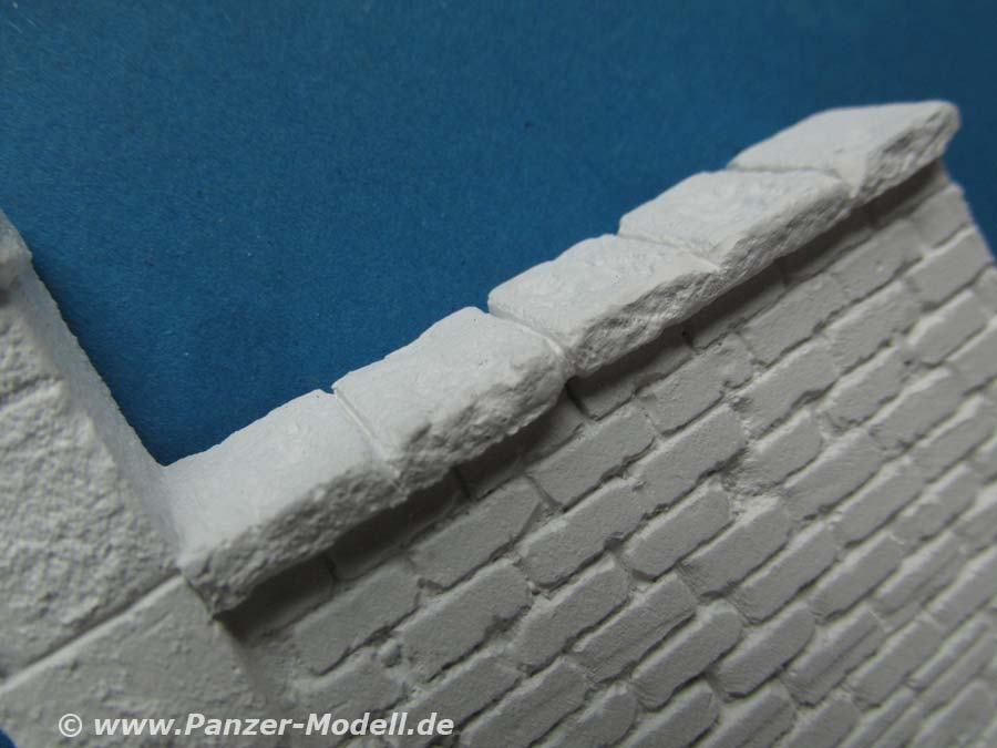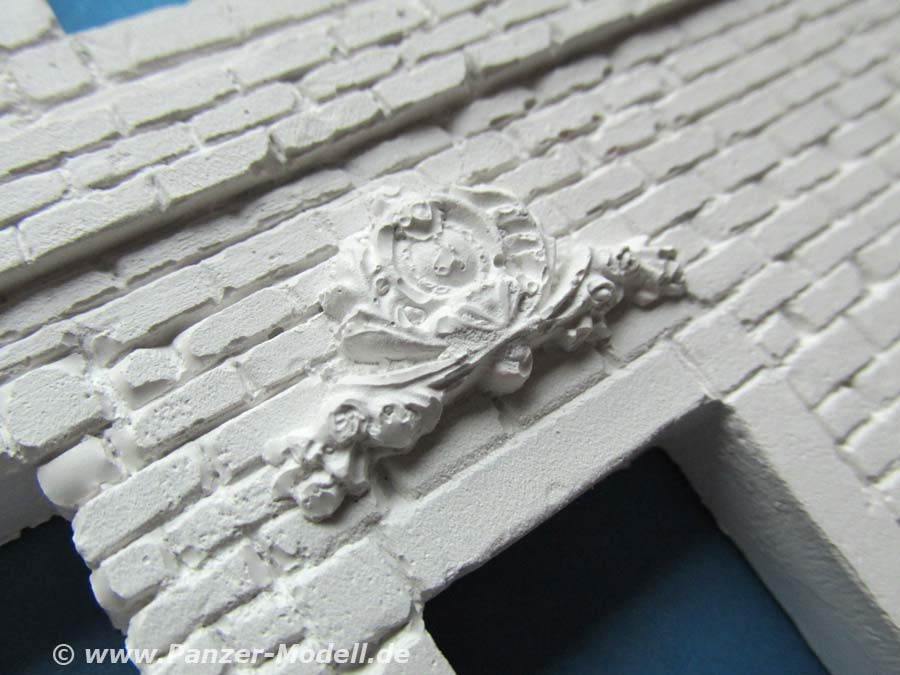 Die Hauswände aus Ziegeln sehen sehr gut aus und sind schön realistisch und unregelmäßig, sowie Ornamente, Aussparungen für Haustür und Fenster.