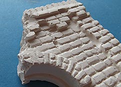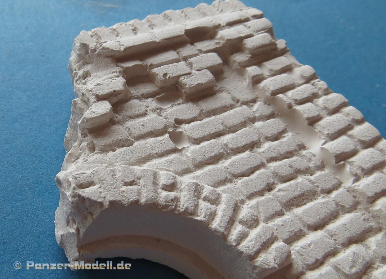 Die Grundplatte ist aus vier Keramikplatten zusammenzusetzen - die aufmodellierten Details sind bereits sehr schön und realistisch uneben, mit unregelmäßiger Struktur, brüchigen Kanten und teilweise mit Beschädigungen und Rissen der Betonplatten - das Problem dürfte in der Hauptsache darin liegen alle vier Bodenplatten so zusammenzusetzen dass der Spalt zwischen ihnen wirklich nahtlos unsichtbar vom Modellbauer bewerkstelligt werden kann.