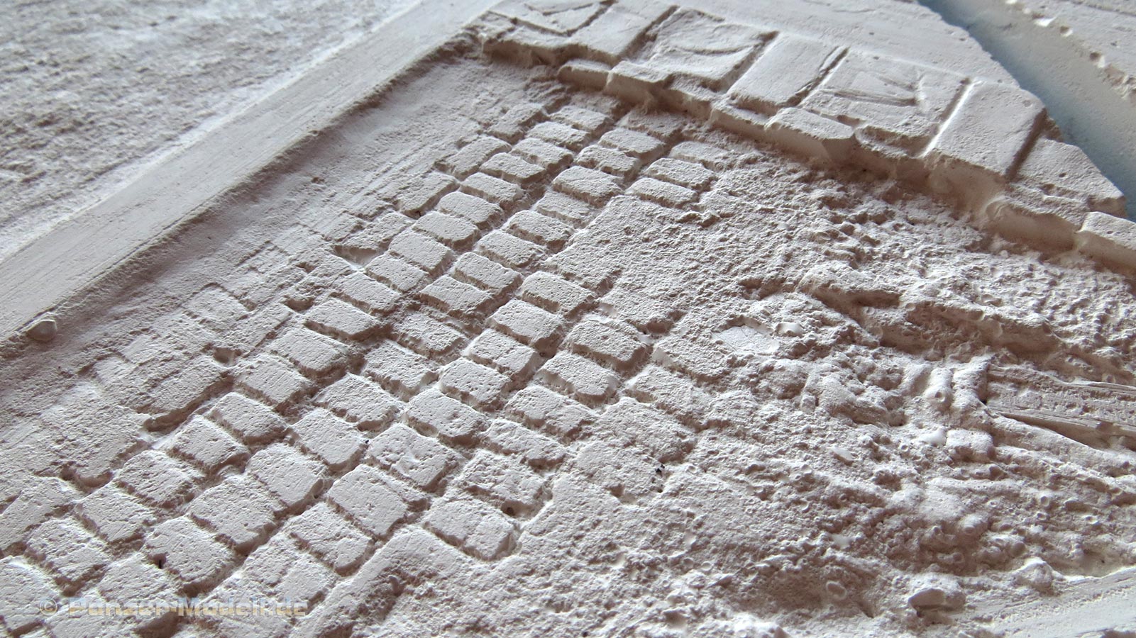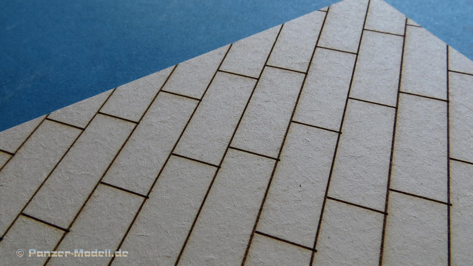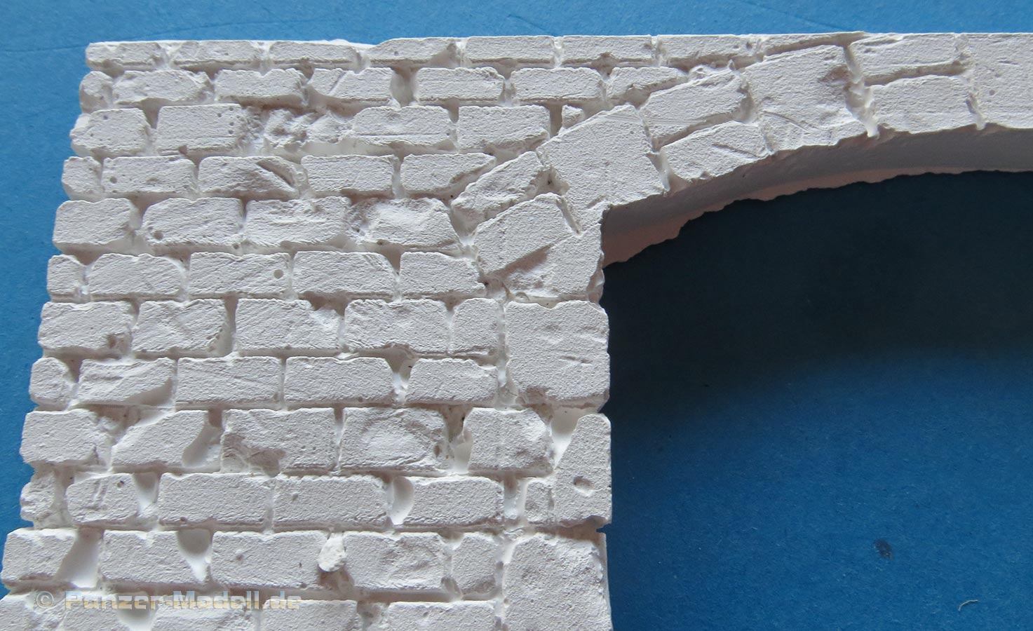 Die Grundplatte ist aus zwei Keramikplatten zusammenzusetzen - die aufmodellierten Details sind bereits sehr schön und realistisch - das Problem dürfte in der Hauptsache darin liegen beide Platten so zusammenzusetzen dass der Spalt zwischen beiden Platten wirklich nahtlos unsichtbar vom Modellbauer bewerkstelligt werden sollte.