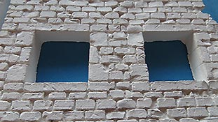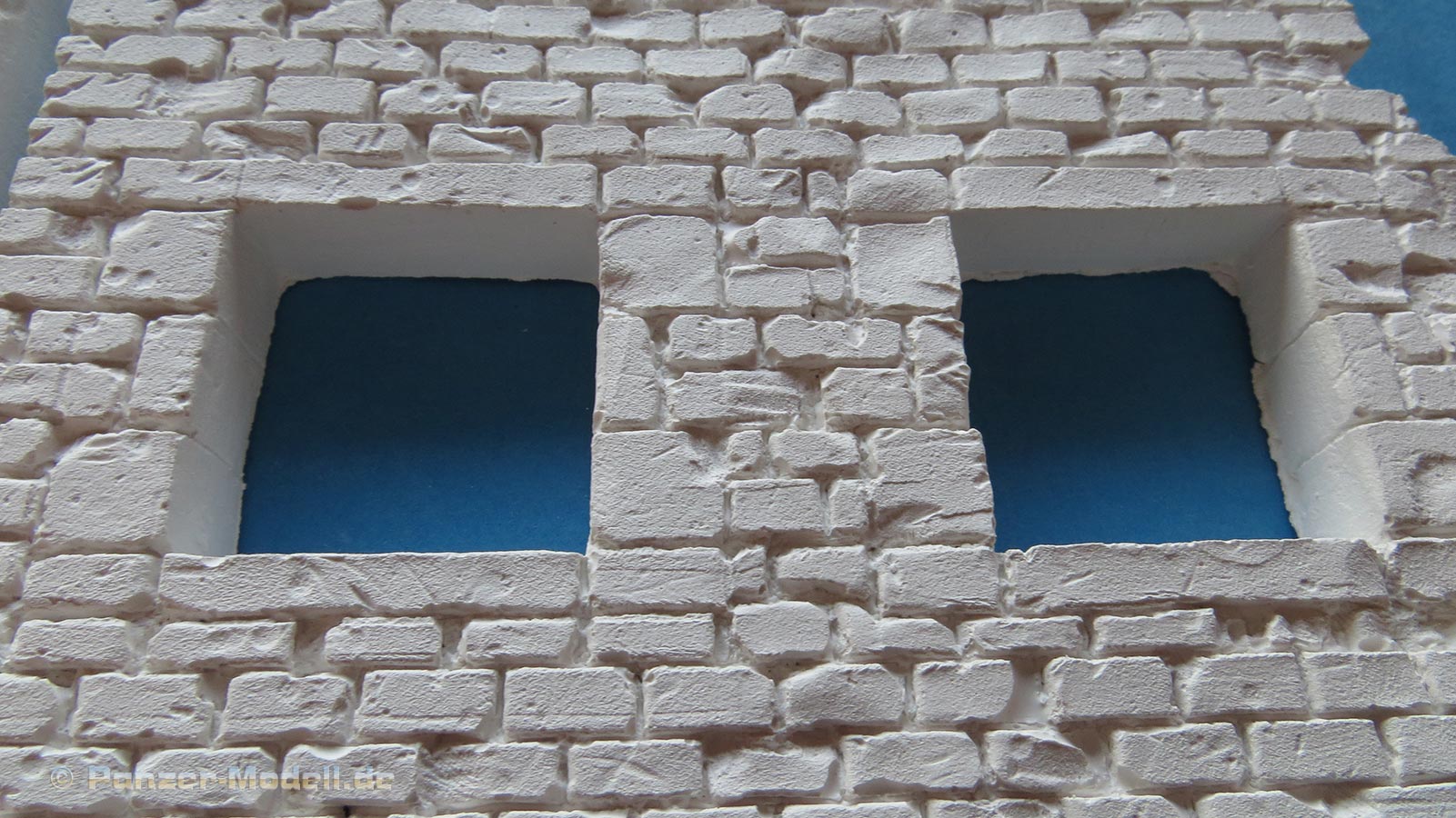 Die gemauerten Wände sind aussen mit wahnsinnig gut und realistisch gestalteten Ziegelsteinen und ihrer Unregelmäßigkeit und teilweisen Beschädigungen dargestellt.