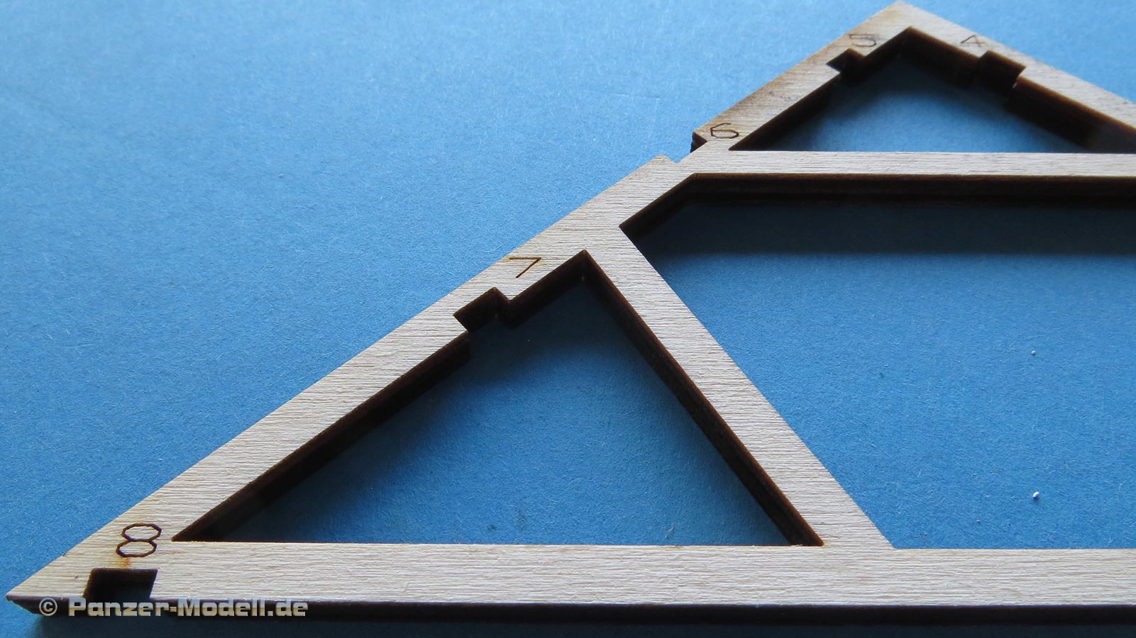Das Dach ist quasi ein wenig ein Bausatz für sich, das richtig aus Holzteilen mit Dachsparren und Abdeckungen aufgebaut wird - auf den Abdeckungen werden noch einzelne kleine Leisten aufgeklebt, die vom Modellbauer dann noch passend abgelängt werden müssen.