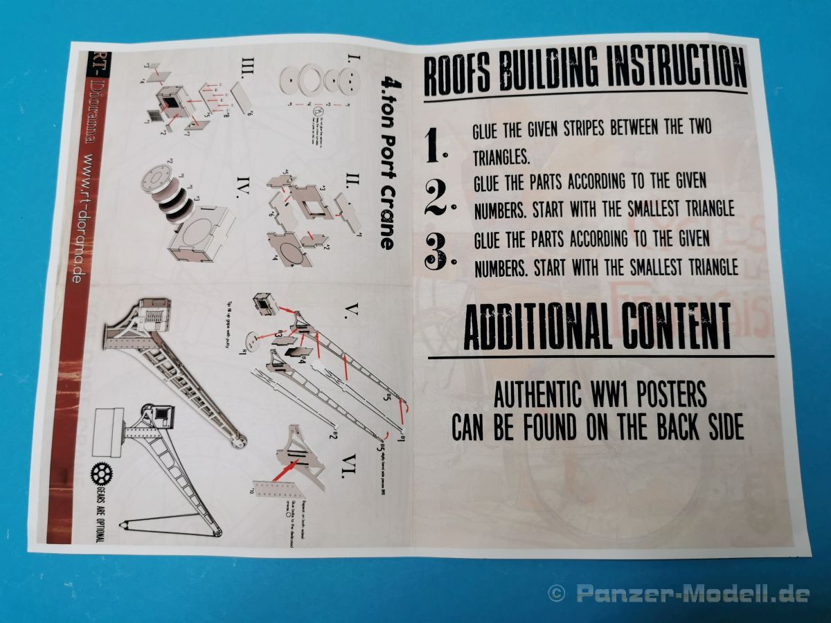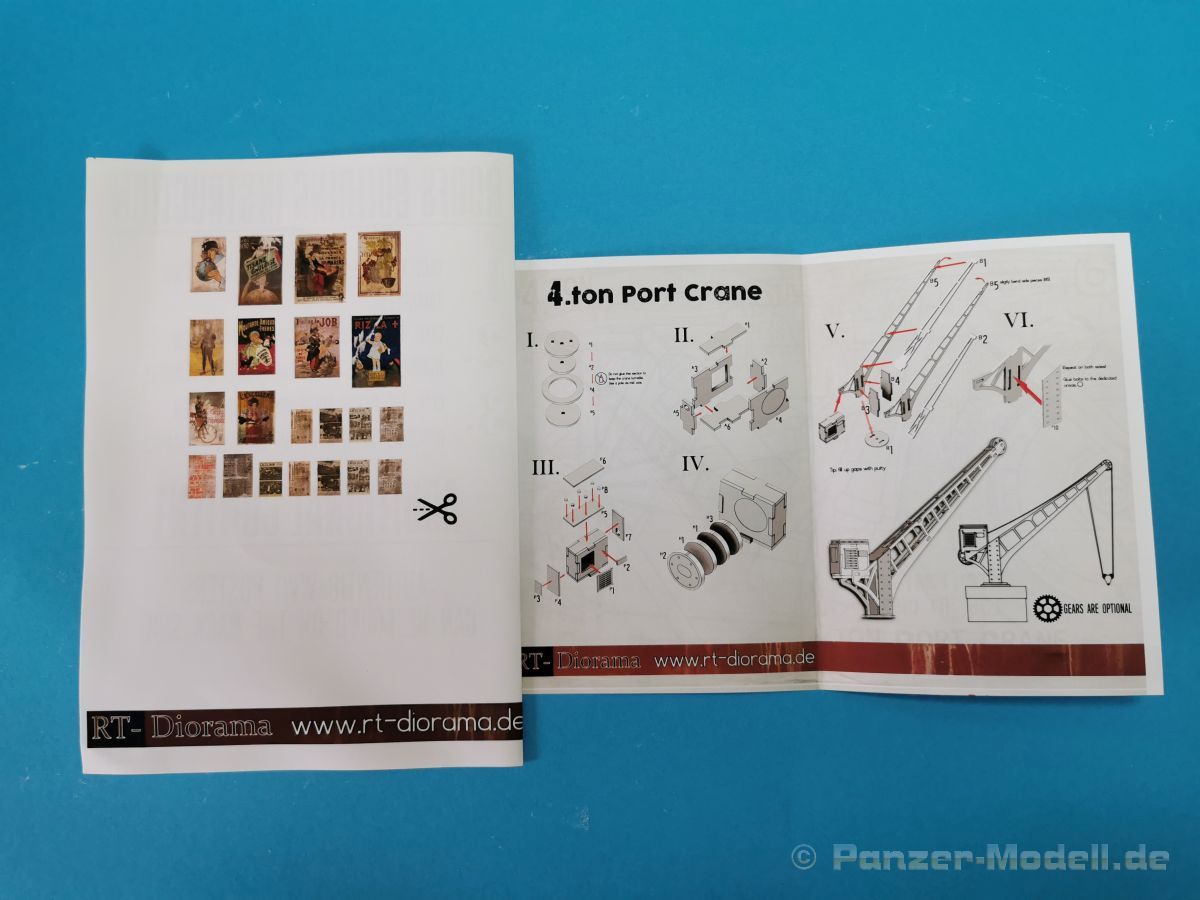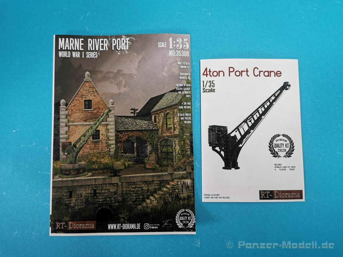 Mit dem vorliegenden Set 35308, Marne River Port, WW I, lässt sich eine Szene an einem innerstädtischen Hafen bauen. Dieser Hafen liegt dann an der Marne, einem Fluss in Frankreich, irgendwo in irgendeiner Ortschaft. Zeitlich angesiedelt ist die Szene, gemäß dem Titel, für den Zeitraum des ersten Weltkrieges, jedoch lässt sich das Set auch durchaus für eine spätere Epoche anwenden. Das Diorama besteht aus sehr gut detaillierten Bauteilen aus Gießkeramik für die Darstellung von zwei Gebäuden und einem Torbogen, der Grundplatte, der Hafenmauer und einer Treppe. Um es hier nochmal deutlich zu erwähnen, es handelt sich hierbei um Bauteile aus Gießkeramik, nicht aus Gips. Das hat den Vorteil, dass die Bauteile erheblich stabiler sind als Gipsbauteile. Das Grundmaß der Bodenplatte beträgt 32 x 22,5 cm, die Gesamthöhe des Dioramas liegt bei etwa 31 cm. Wie üblich ist die Rückseite der Keramikbauteile nicht detailliert ausgeführt, bei Bedarf lassen sich aber nachträglich Gravuren hinzufügen. Eine ausführliche Beschreibung der dazu erforderlichen Vorgehensweise sowie für den Zusammenbau der Keramik-Bauteile findet man hier auf der Webseite des Herstellers. Eine Bauanleitung für die Montage der Gebäudeteile ist nicht im Set vorhanden. Diese ist meines Erachtens auch nicht nötig da man anhand des Deckelbildes den Aufbau gut erkennen kann. Für die Ausstattung der Gebäude liegen Fenster, Holztore und ein Gittertor aus per Laser geschnittenem Holz bei. Die Verglasung der Fenster wird mit den beiliegenden, bereits bedruckten und gealterten Folien dargestellt. Darüber hinaus liegen Poller, zum Vertäuen der angelegten Schiffe oder Boote, aus 3-D-Druck bei und Absperrpoller aus Keramik bei. Der 4-to-Kran wird aus lasergeschnittenem Holz dargestellt und bekommt einen Sockel aus Keramikbauteilen. Für den Zusammenbau des Krans liegt eine ausführliche Bauanleitung bei. Warum diese Anleitung 2x vorhanden ist erschließt sich mir jetzt nicht wirklich. Man findet sie nämlich einmal separat und ein weiteres Mal in dem Blatt mit dem Produktfoto, auf dessen Rückseite sich einige Poster / Plakate, thematisch in dem Zeitraum WK I angesiedelt, zur Ausstattung der Gebäude befinden. Weiterhin gibt es dort grundlegende Hinweise für die Dachkonstruktion. Ich bin total begeistert von der, mit viel Liebe zum Detail, ausgeführten der Mauer- und Holzteile für die Gebäude. Die Maserung der alten Fachwerkbalken, kleine Schäden an den Mauersteinen, die Abnutzungen an den Stufen der Treppe… alles ist sehr realistisch und sehr schön detailliert dargestellt. Siehe dazu auch die Detailfotos. Fazit: Das gesamte Set beeindruckt durch die Fülle an Details und natürlich auch durch die Anzahl der Bauteile. Man bekommt hier für sein Geld einen erstklassigen Dioramabausatz. Sicher, der Preis von ca. 120,- € für das vorliegende Set lässt einen erstmal schlucken… aber es besteht ja aus den Gießkeramikbauteilen. Als günstigere Alternative gibt es das Set auch mit Gipsbauteilen, die aber etwas weniger stabil sind, für rund 80,- €. Wir bedanken uns bei Rudi Theunissen für den Musterbausatz!