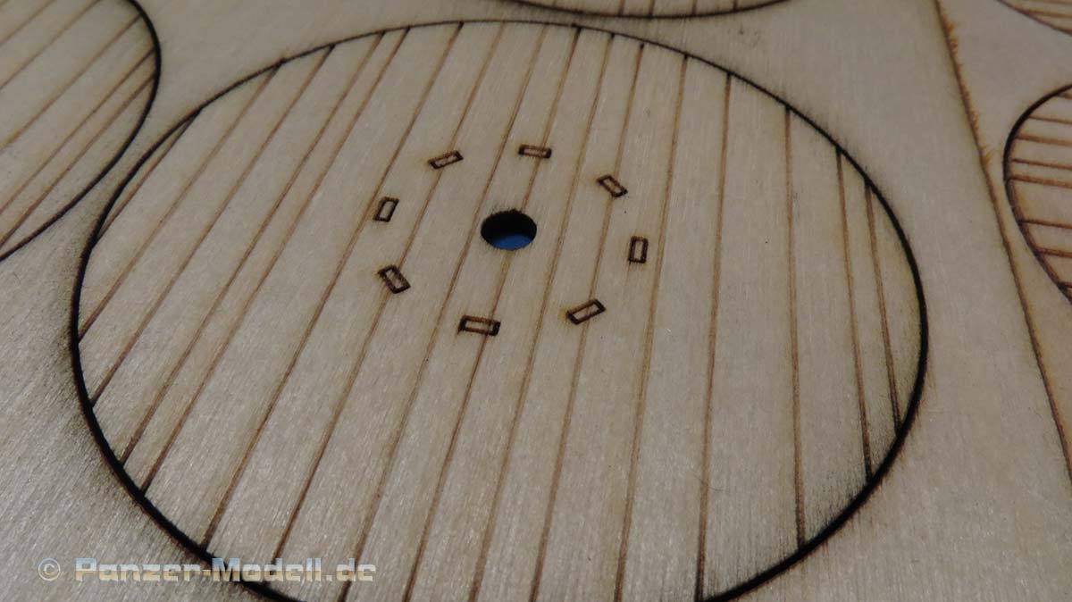 Die Holzplatten sind ganz astrein und sauber per Laser geschnitten. Insbesondere Kreise sind ja quasi die Königsklasse des sauberen Schnitts.