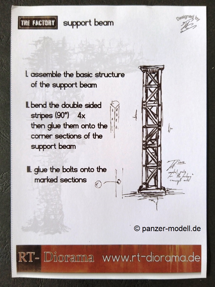 Eine kleine Bauanleitung bzw. eher Skizze für die Stützpfeiler liegt der Verpackung bei. Alles Weitere lässt sich aber auch aus dem farbigen Deckelbild erkennen.