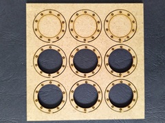 - 1 Stück Lasercut-Holztafel ca.9,5 x 9,5cm und einer Stärke von ca. 2mm mit 9 Teilen für die Rohrflansche