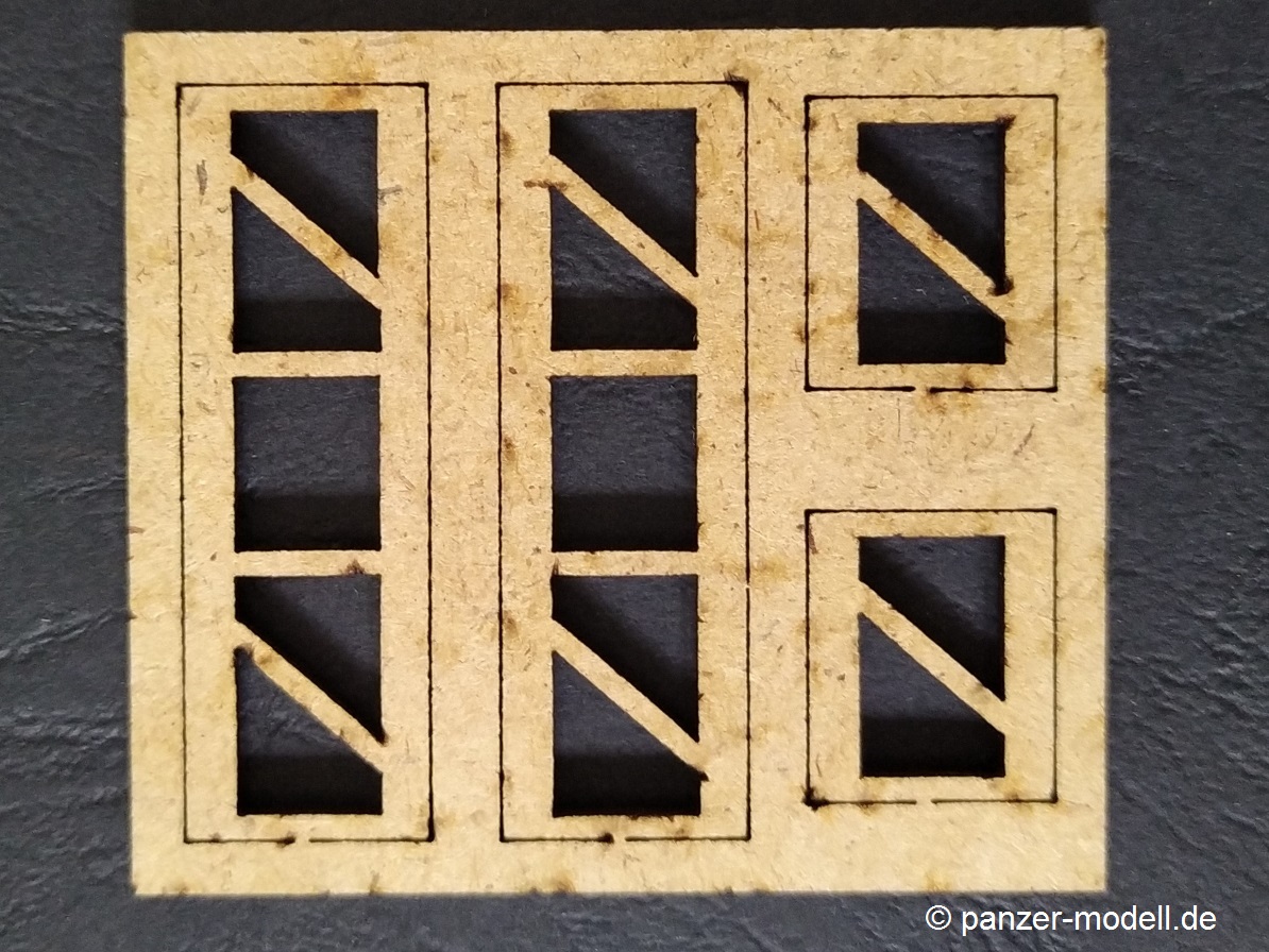 - 1 Stück Lasercut-Holztafel ca.5,5 x 5,0cm und einer Stärke von ca. 2mm mit 4 Teilen für die Rohrbrücken